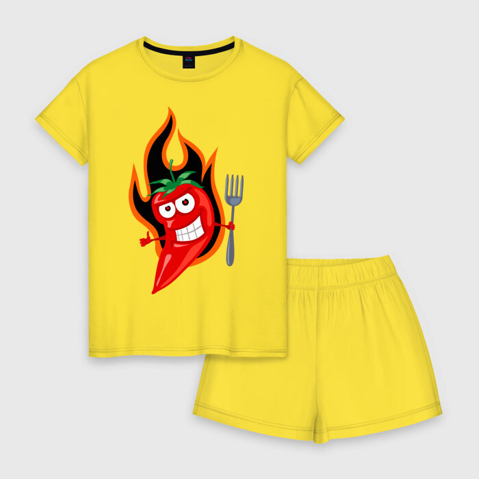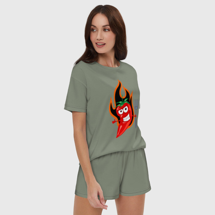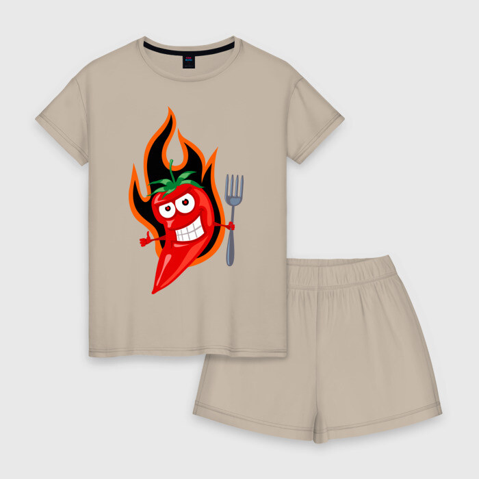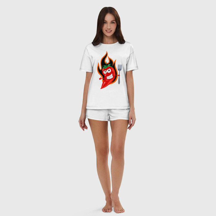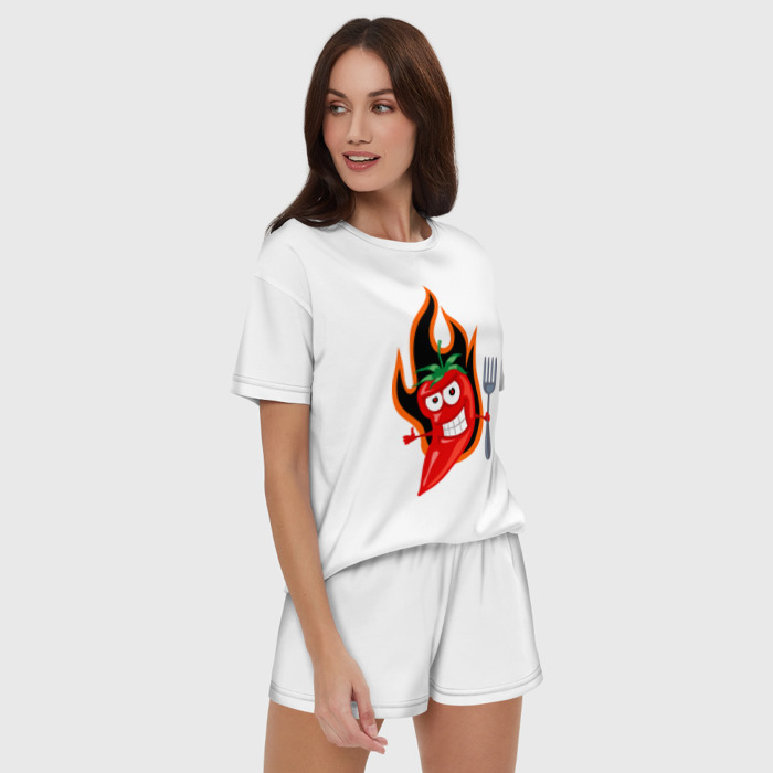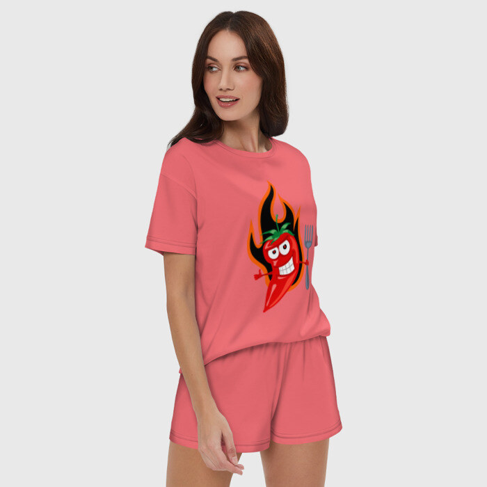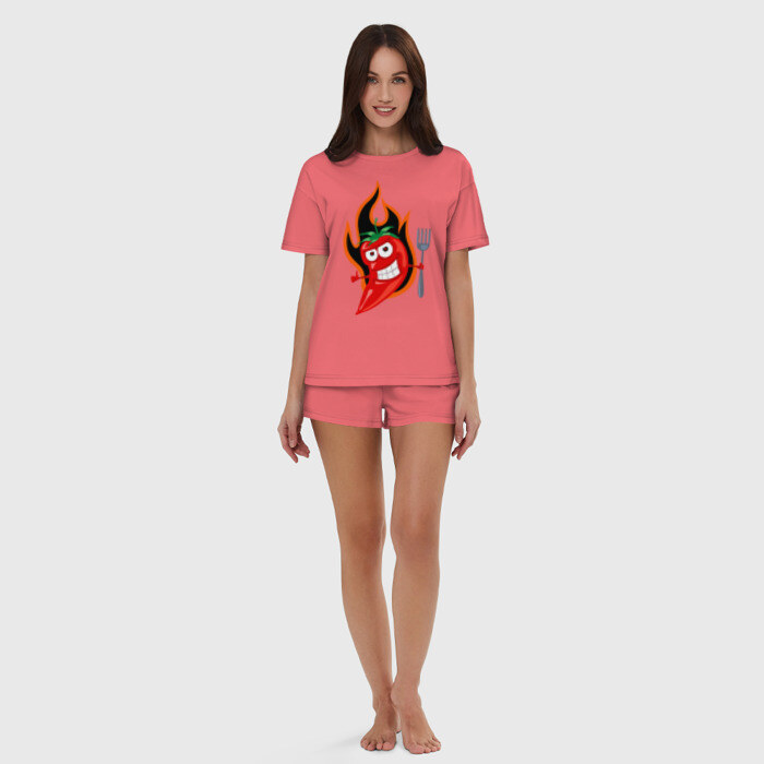 Женская пижама с шортиками хлопок с принтом Горячий перец (red hot pepper)