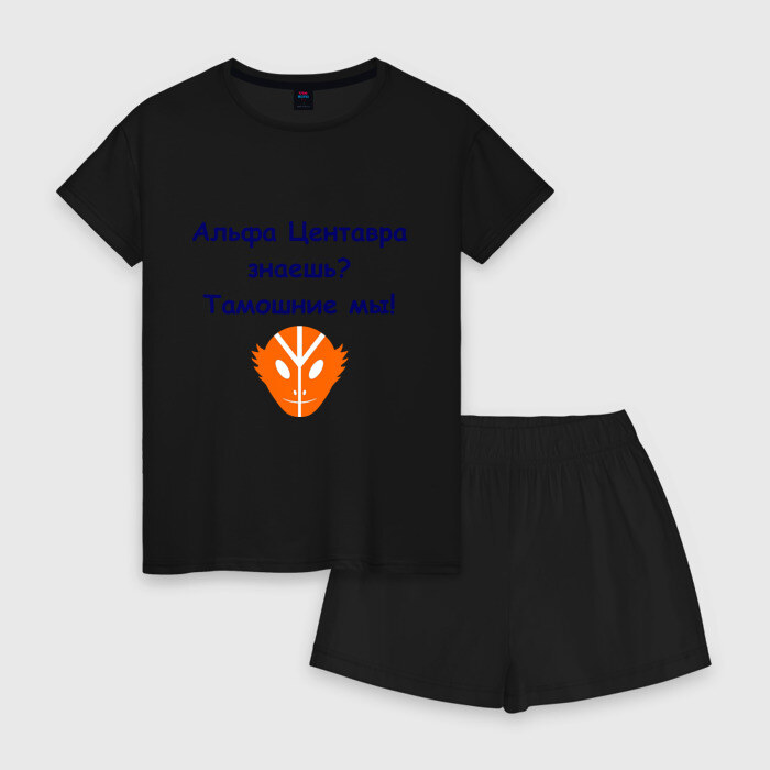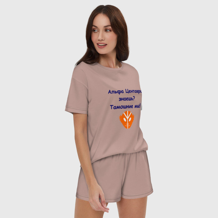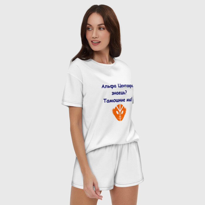 Женская пижама с шортиками хлопок с принтом Альфа Центавра знаешь? Тамошние мы!