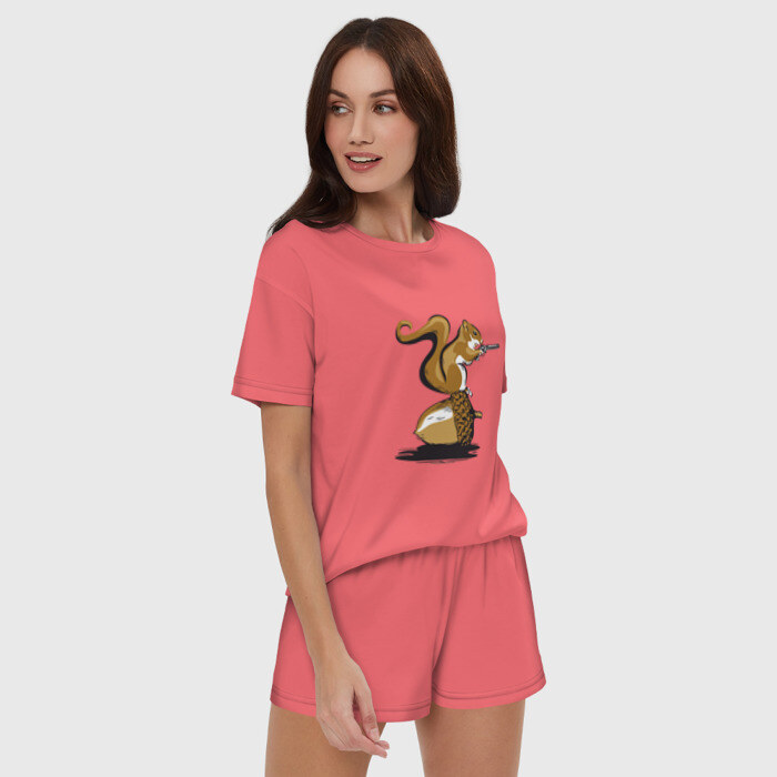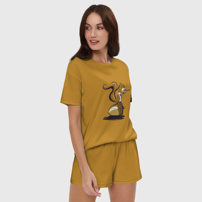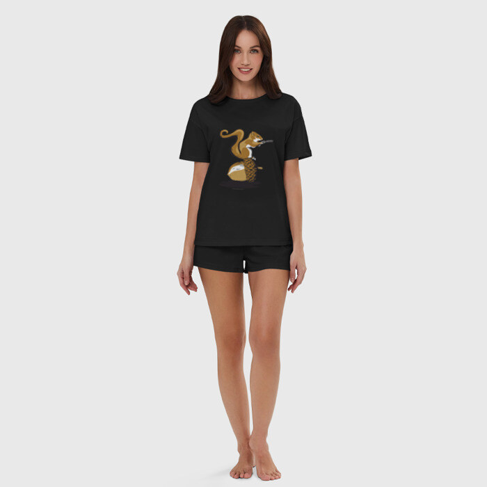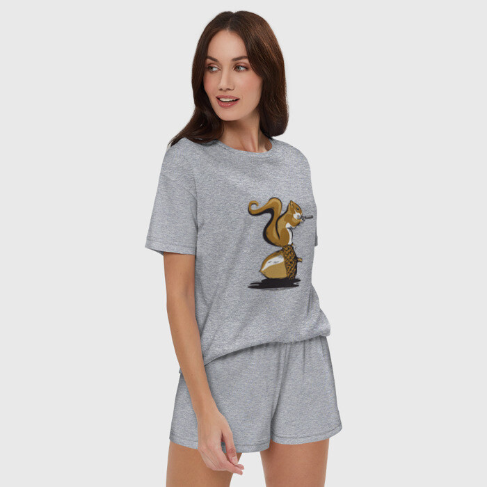 Пижама сшита из мягкого хлопка. Базовую хлопковую футболку дополняют такого же цвета шорты свободного кроя с мягкой резинкой. Принт наносится только на футболку. Пара может стать удобной одеждой как для дома, так и для сна.