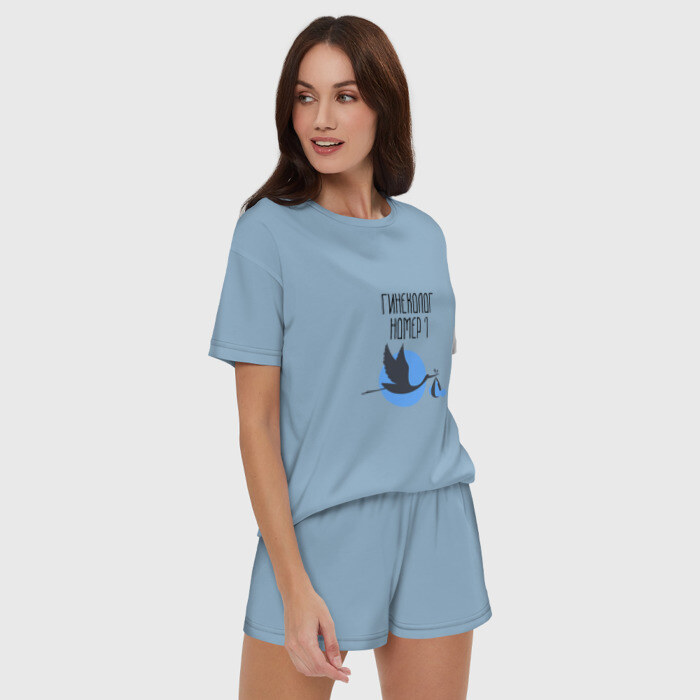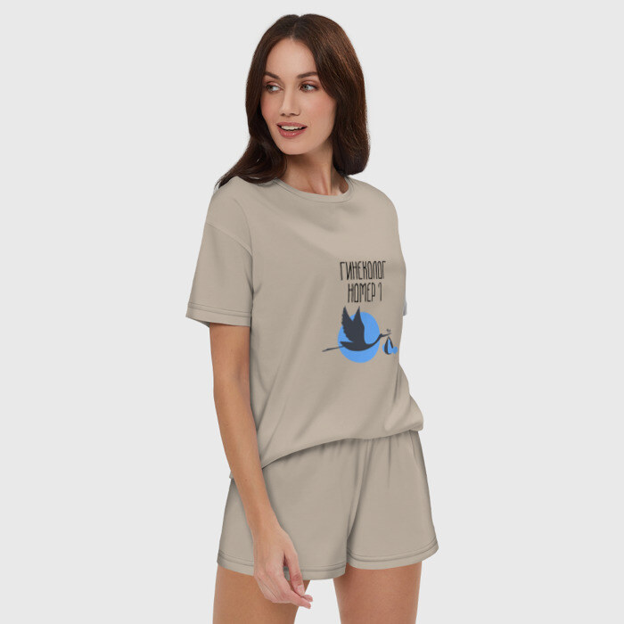 Женская пижама с шортиками хлопок с принтом Гинеколог номер 1