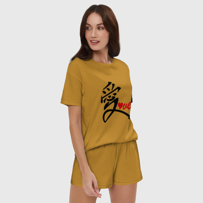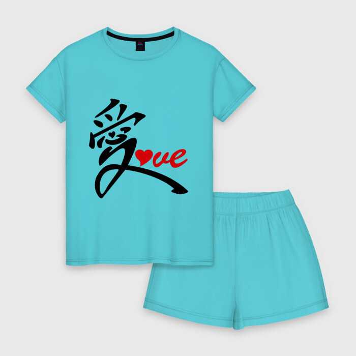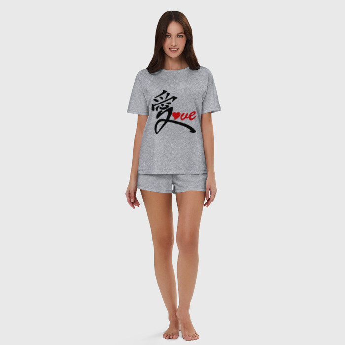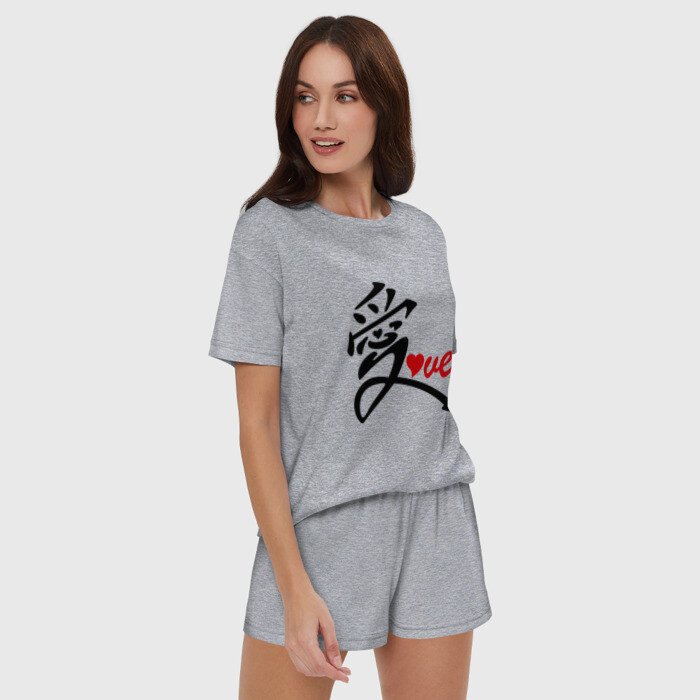 Женская пижама с шортиками хлопок с принтом Китайский символ любви (love)