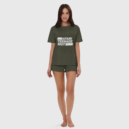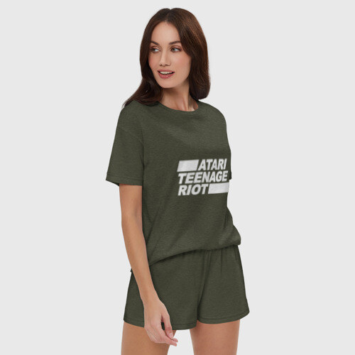 Женская пижама с шортиками хлопок с принтом Atari Teenage Riot (White)