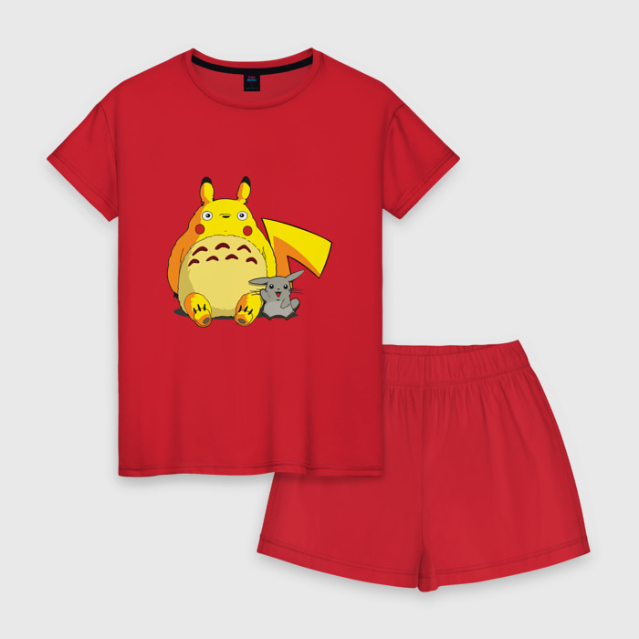 Женская пижама с шортиками хлопок с принтом Тоторо и Пикачу