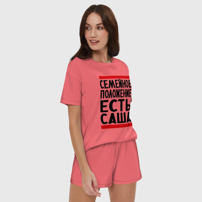 Женская пижама с шортиками хлопок с принтом Есть Саша
