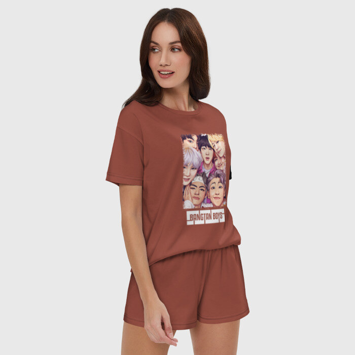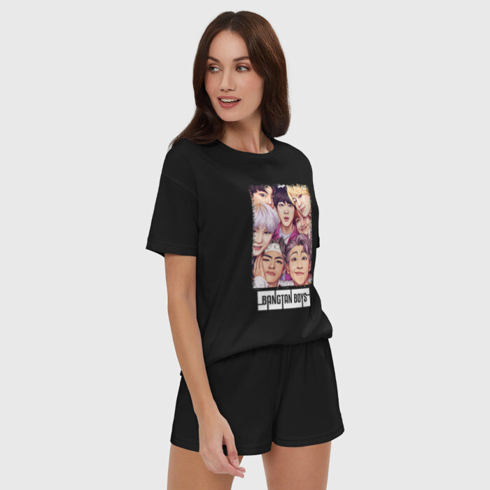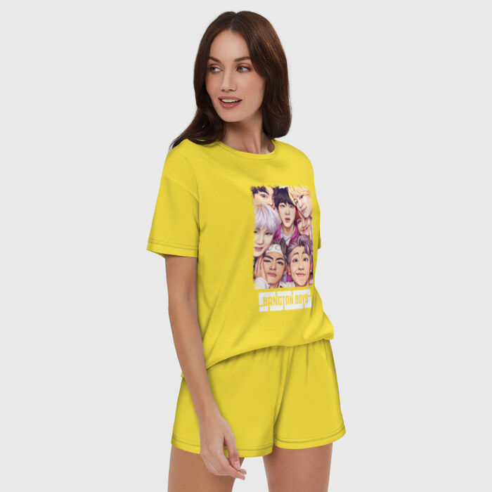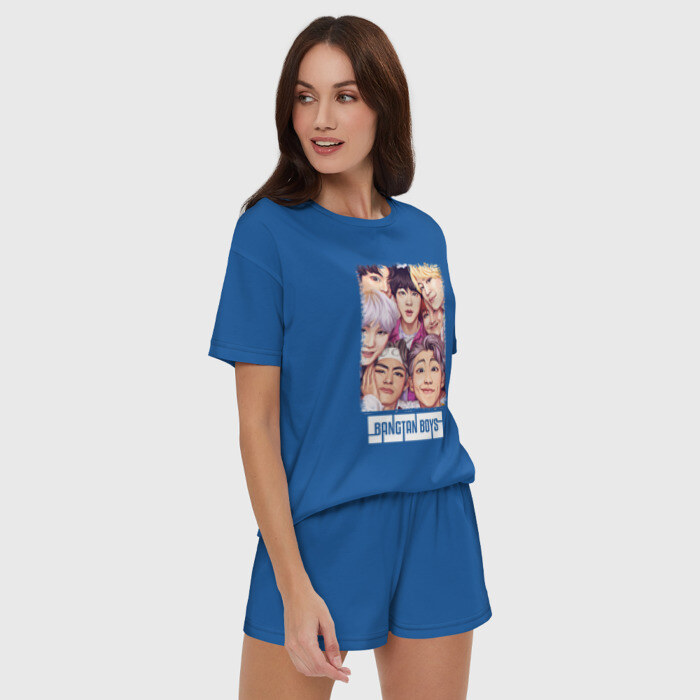 Пижама сшита из мягкого хлопка. Базовую хлопковую футболку дополняют такого же цвета шорты свободного кроя с мягкой резинкой. Принт наносится только на футболку. Пара может стать удобной одеждой как для дома, так и для сна.