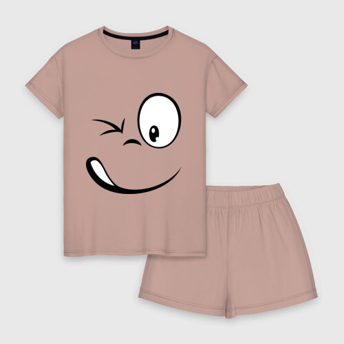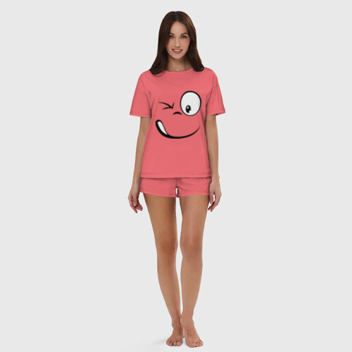 Женская пижама с шортиками хлопок с принтом Смайл подмигивает