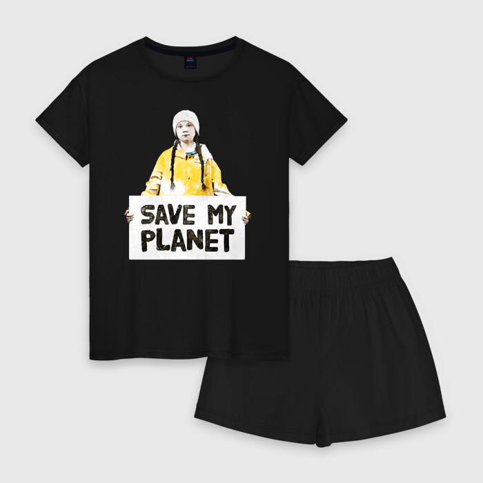 Женская пижама с шортиками хлопок с принтом Save My Planet