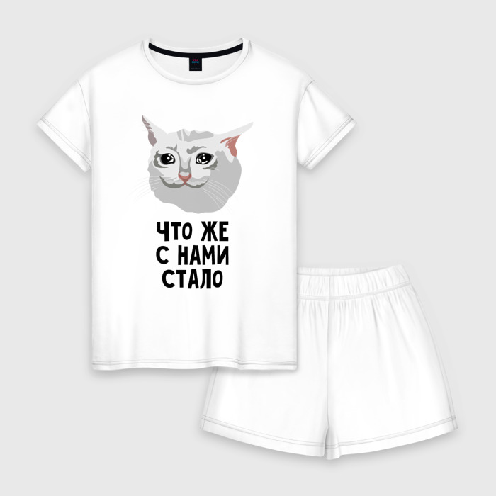 Женская пижама с шортиками хлопок с принтом Грустный котик
