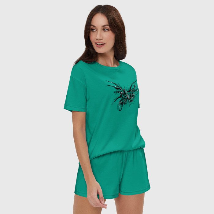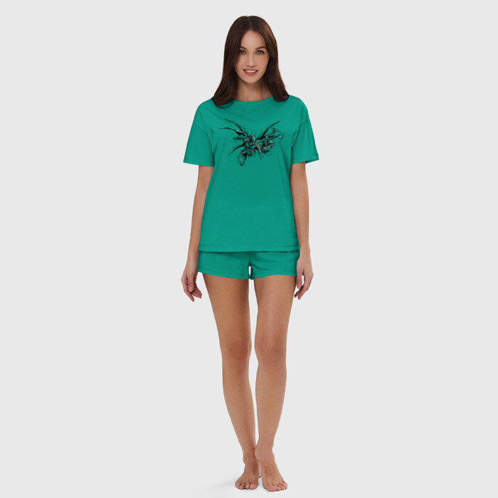 Пижама сшита из мягкого хлопка. Базовую хлопковую футболку дополняют такого же цвета шорты свободного кроя с мягкой резинкой. Принт наносится только на футболку. Пара может стать удобной одеждой как для дома, так и для сна.