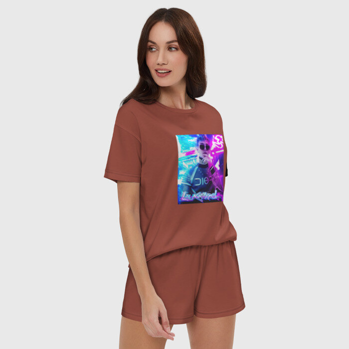 Женская пижама с шортиками хлопок с принтом LIL KRYSTALLL