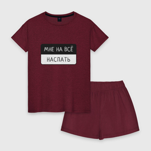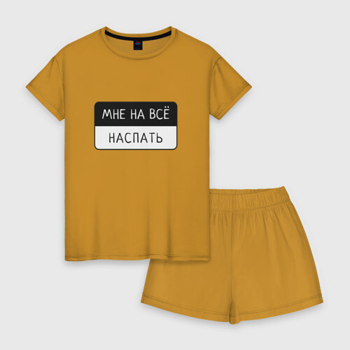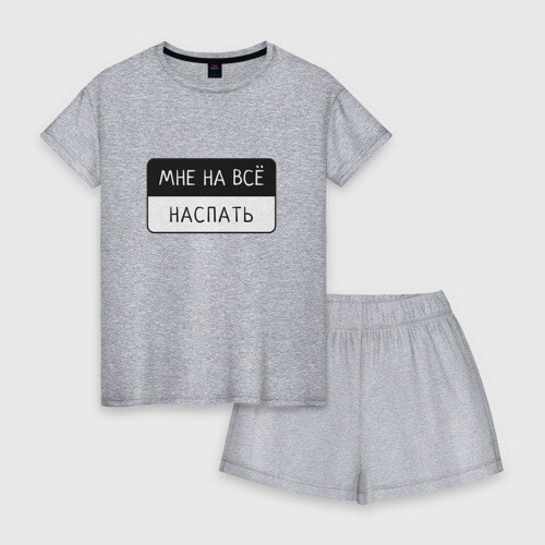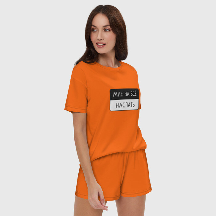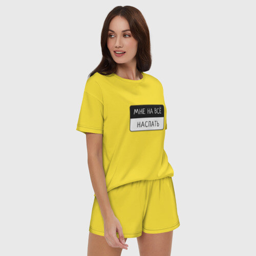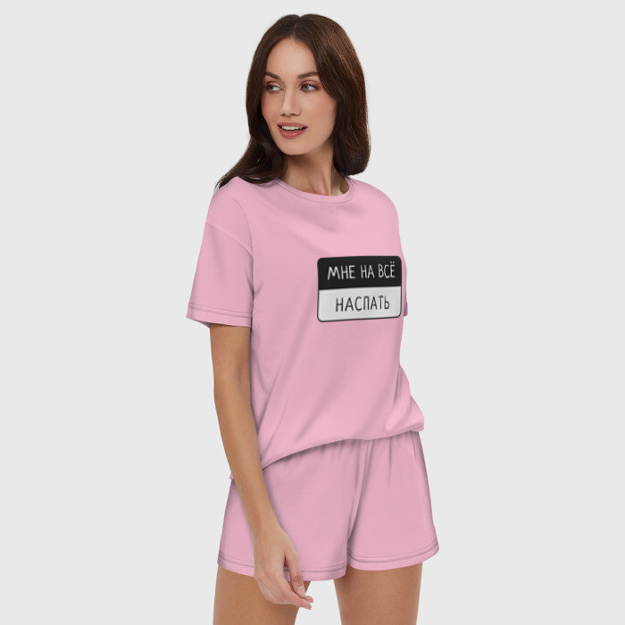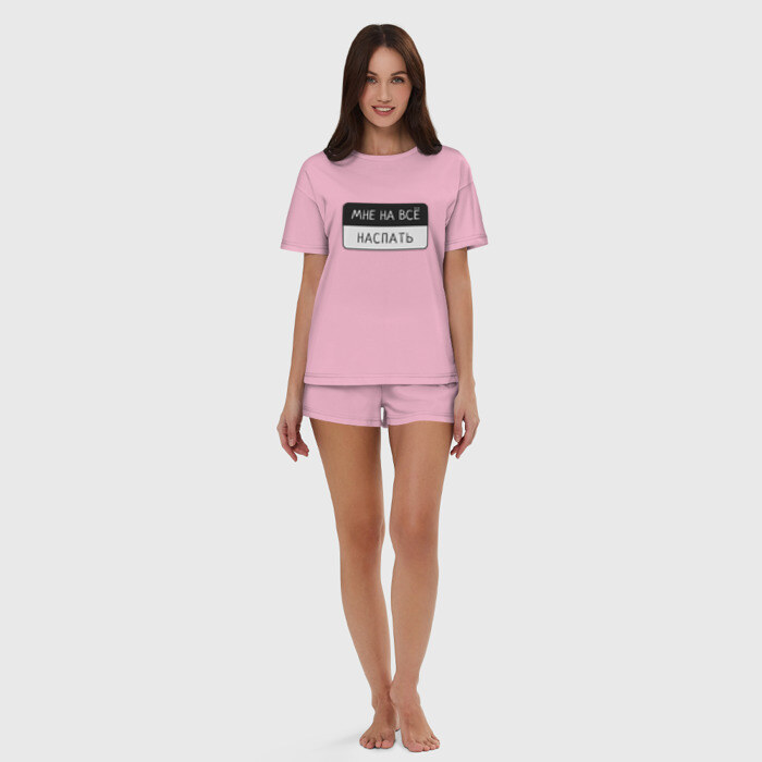 Женская пижама с шортиками хлопок с принтом Мне на всё наспать