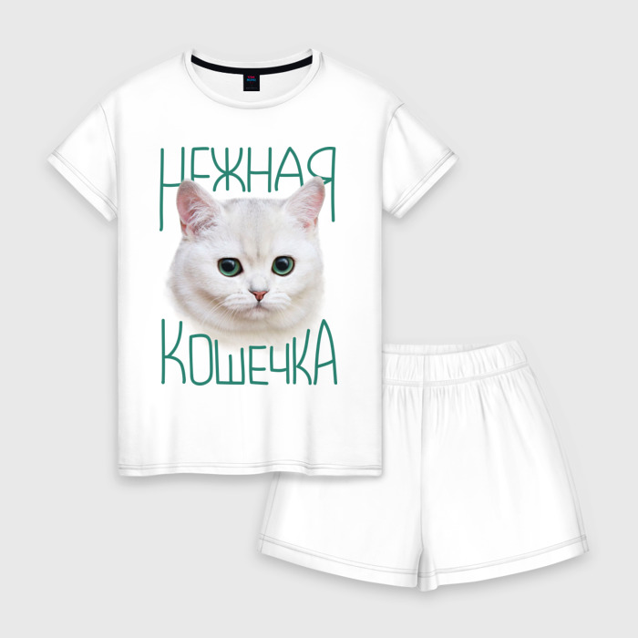 Женская пижама с шортиками хлопок с принтом Нежная кошечка