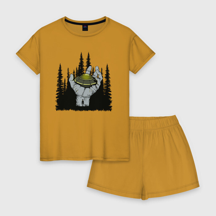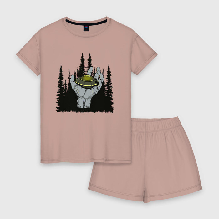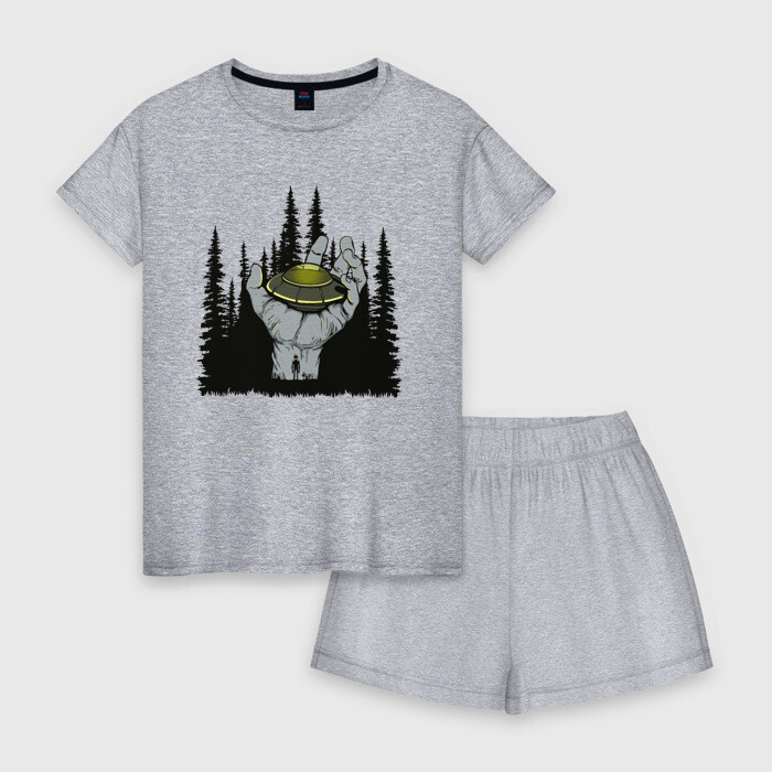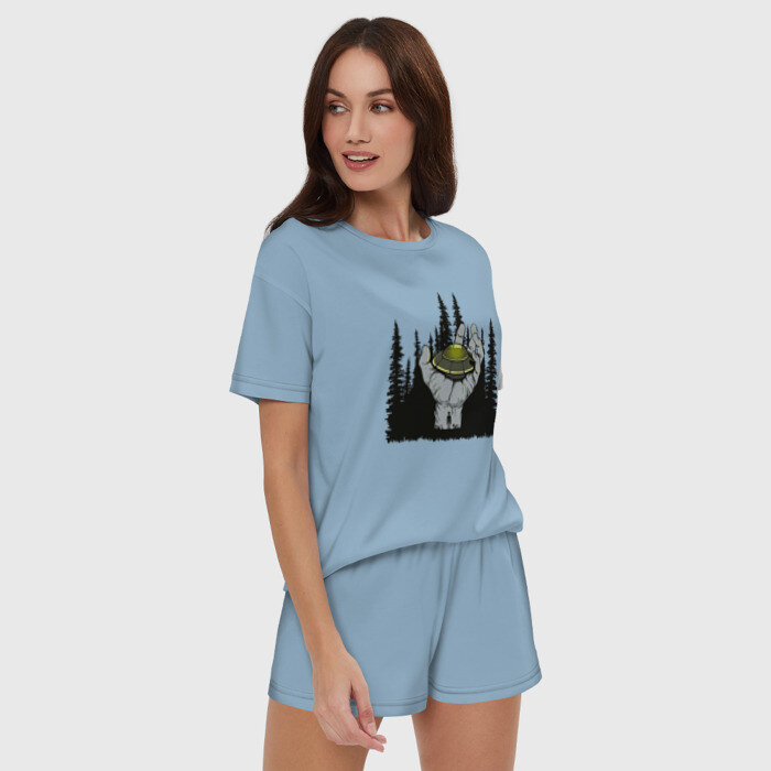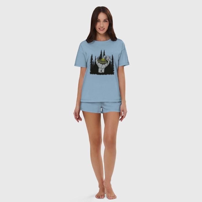 Женская пижама с шортиками хлопок с принтом Гость из космоса