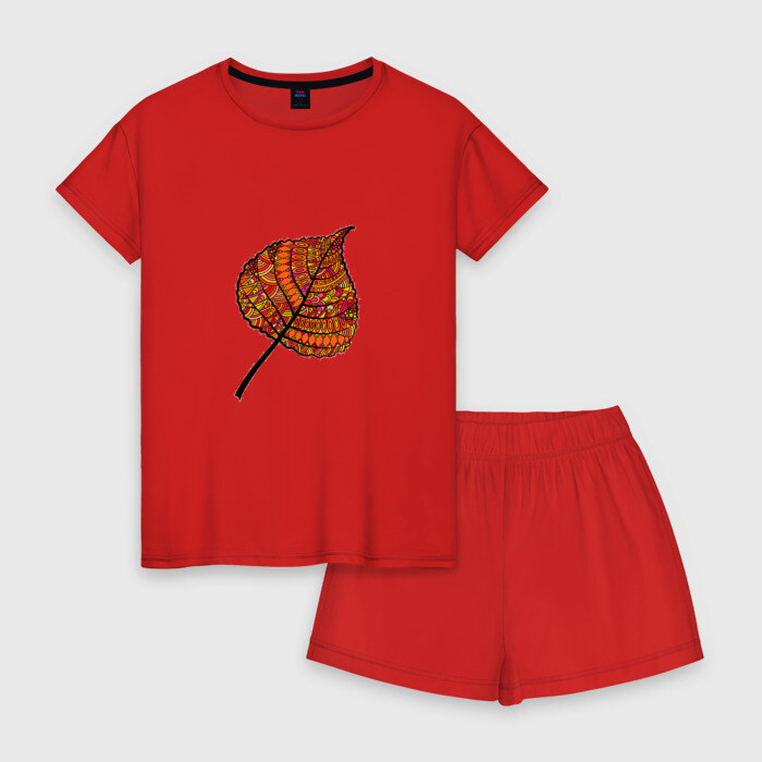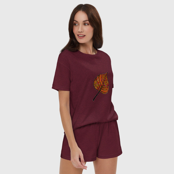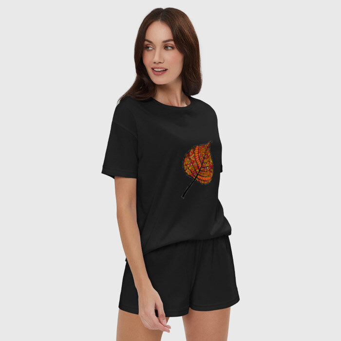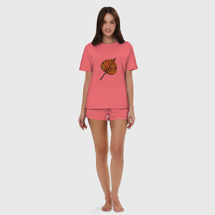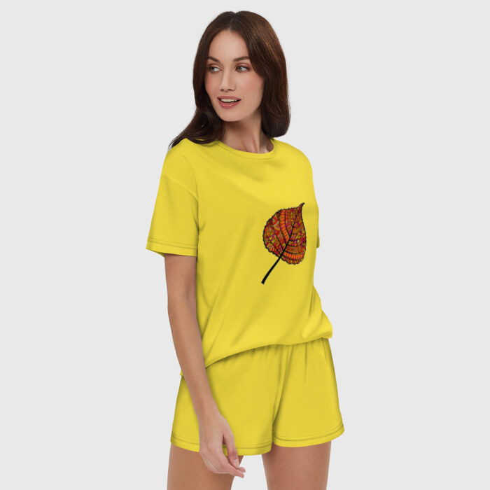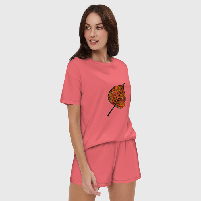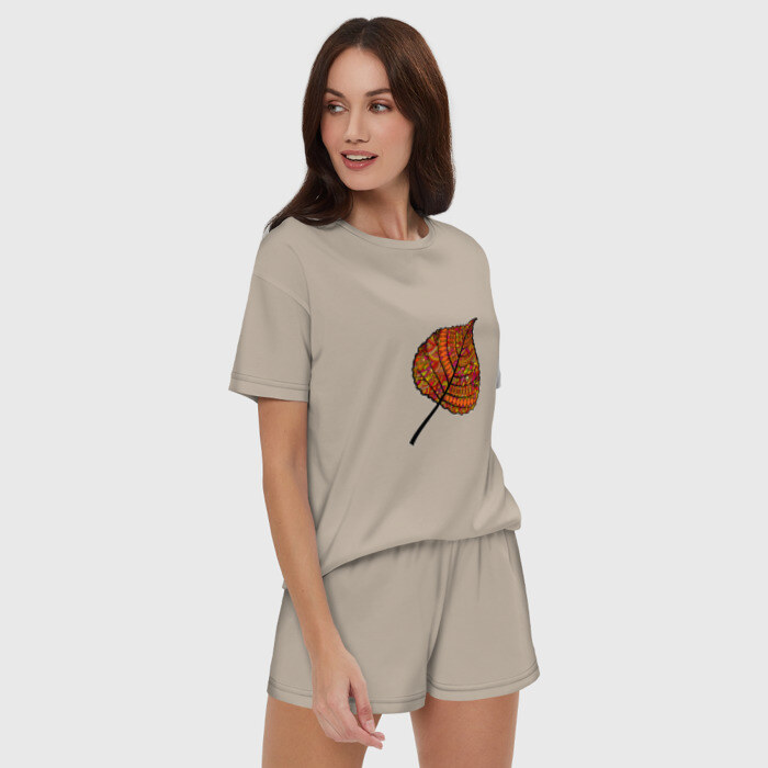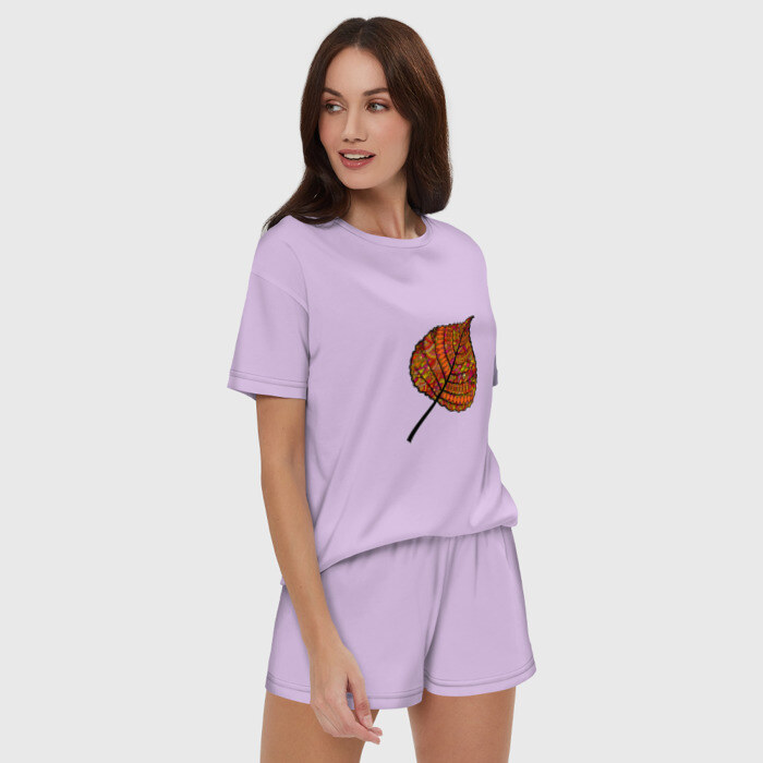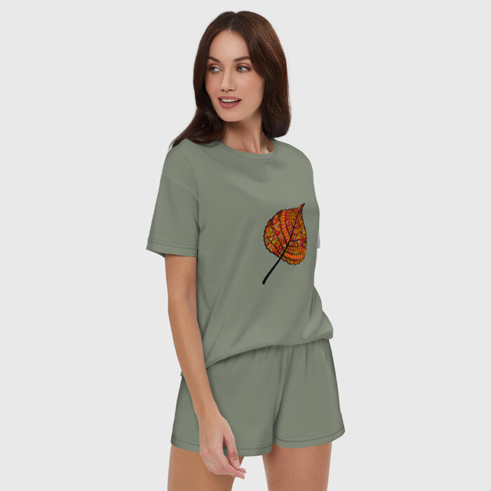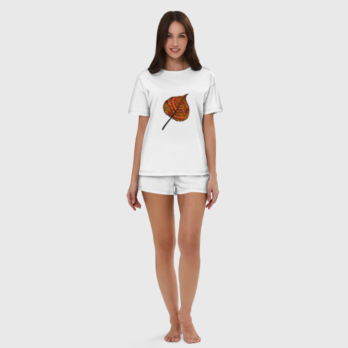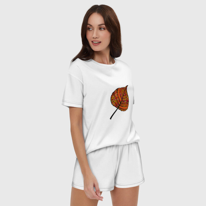 Женская пижама с шортиками хлопок с принтом Листик дудл