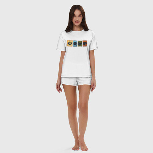 Пижама сшита из мягкого хлопка. Базовую хлопковую футболку дополняют такого же цвета шорты свободного кроя с мягкой резинкой. Принт наносится только на футболку. Пара может стать удобной одеждой как для дома, так и для сна.
