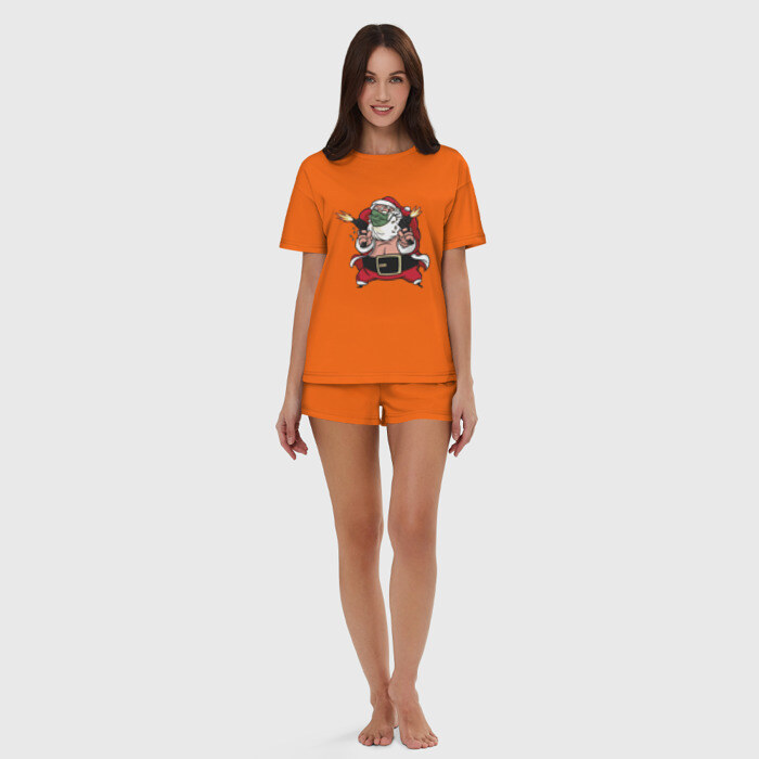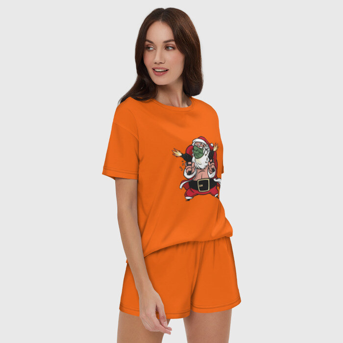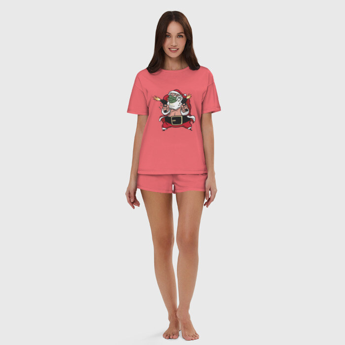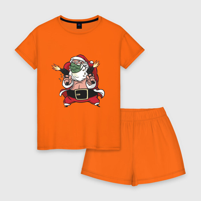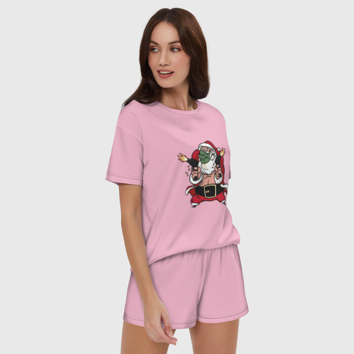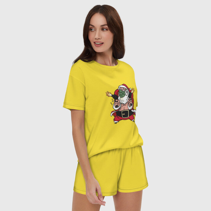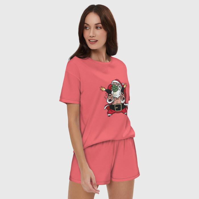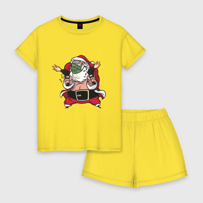 Женская пижама с шортиками хлопок с принтом Злой Санта с пулемётами