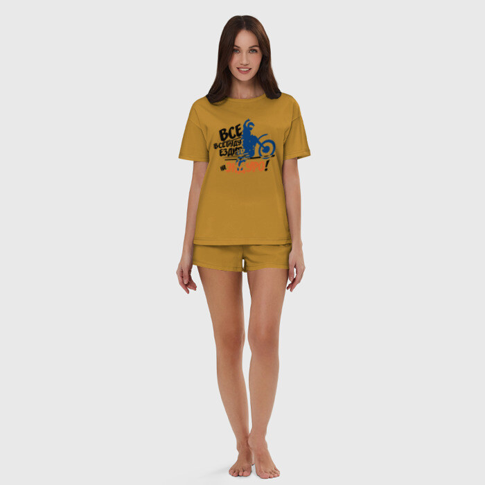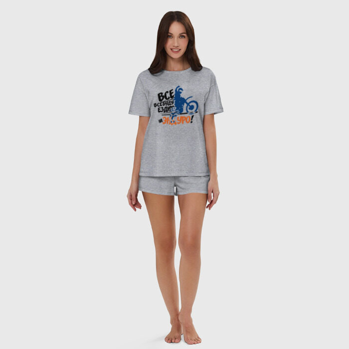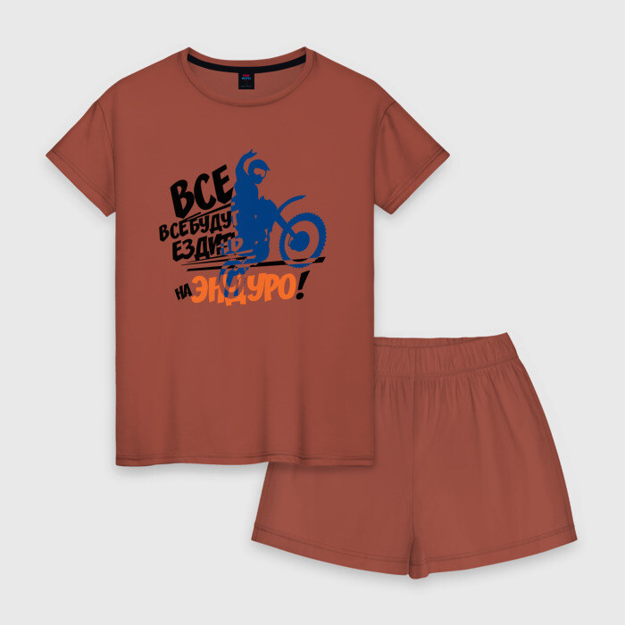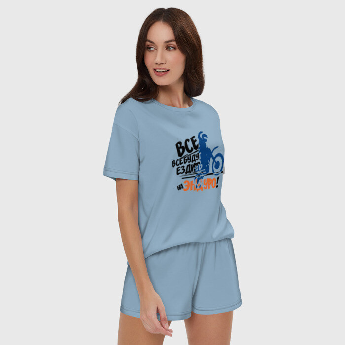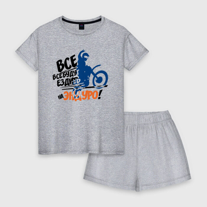 Женская пижама с шортиками хлопок с принтом Все будут ездить на эндуро!