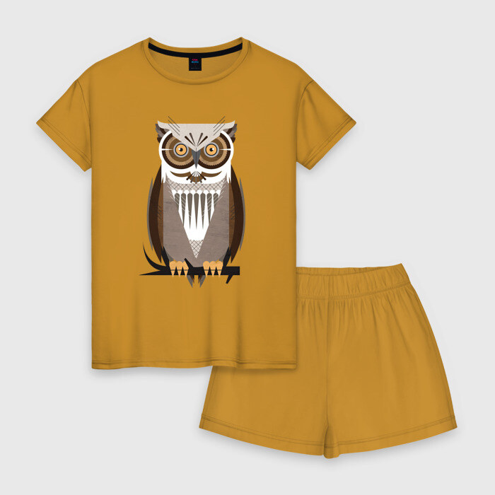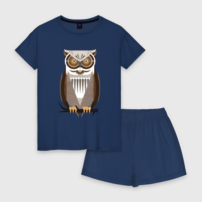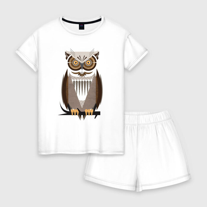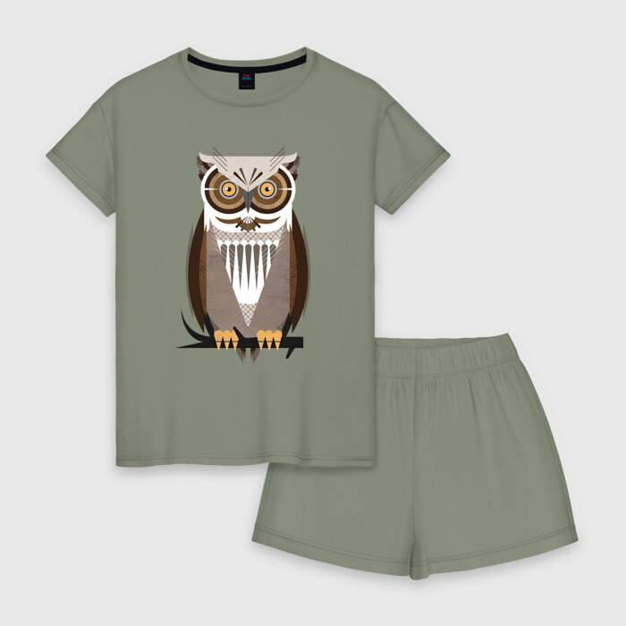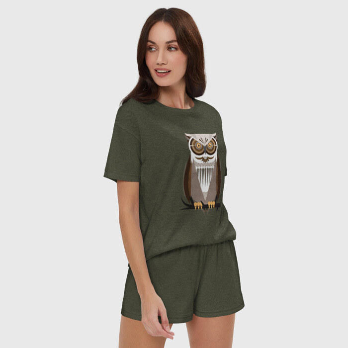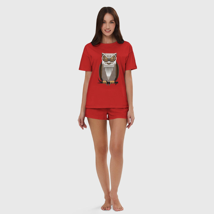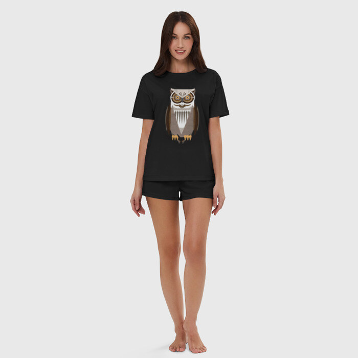 Женская пижама с шортиками хлопок с принтом Бдительная сова
