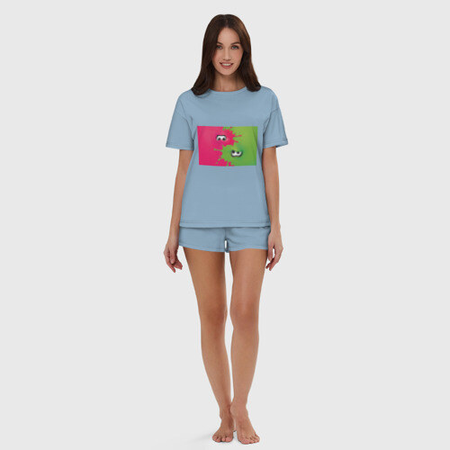 Пижама сшита из мягкого хлопка. Базовую хлопковую футболку дополняют такого же цвета шорты свободного кроя с мягкой резинкой. Принт наносится только на футболку. Пара может стать удобной одеждой как для дома, так и для сна.