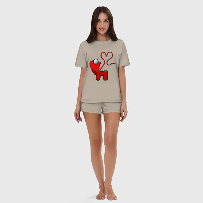 Женская пижама с шортиками хлопок с принтом Among Us Red Imposter Love