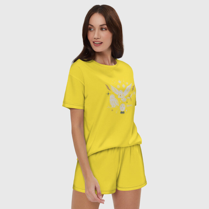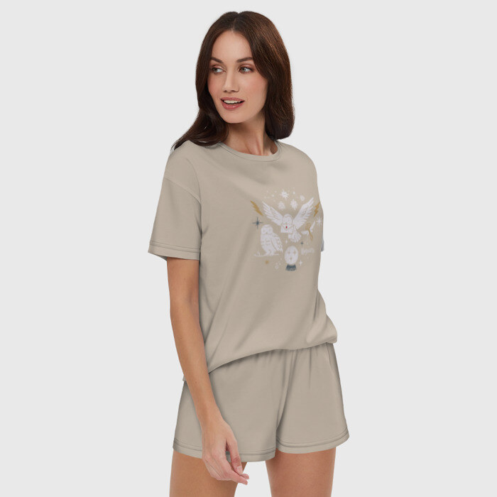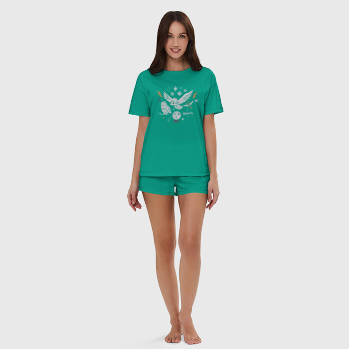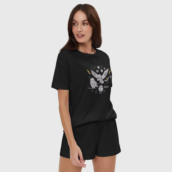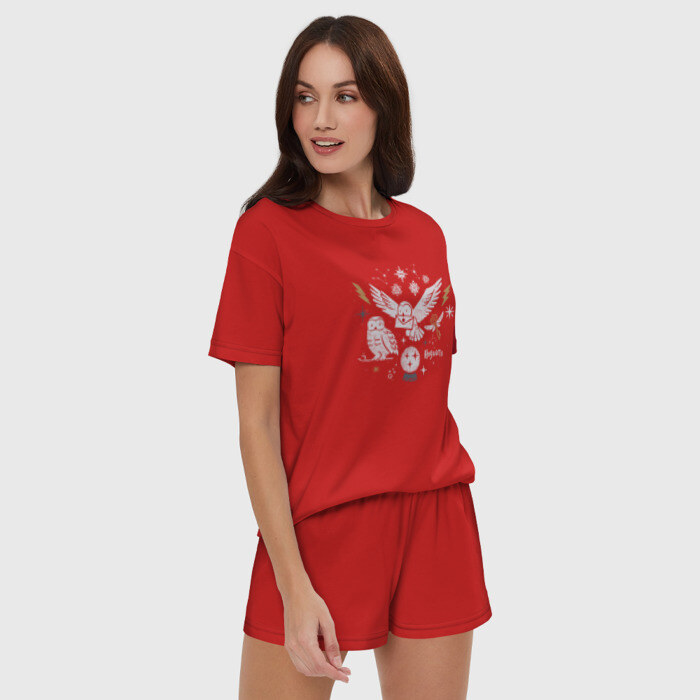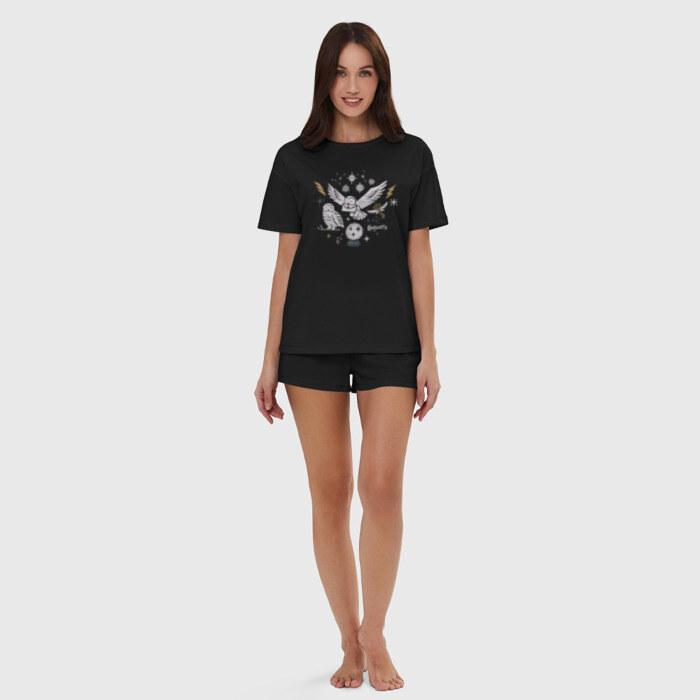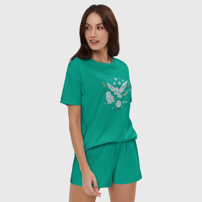 Женская пижама с шортиками хлопок с принтом Хогвартс