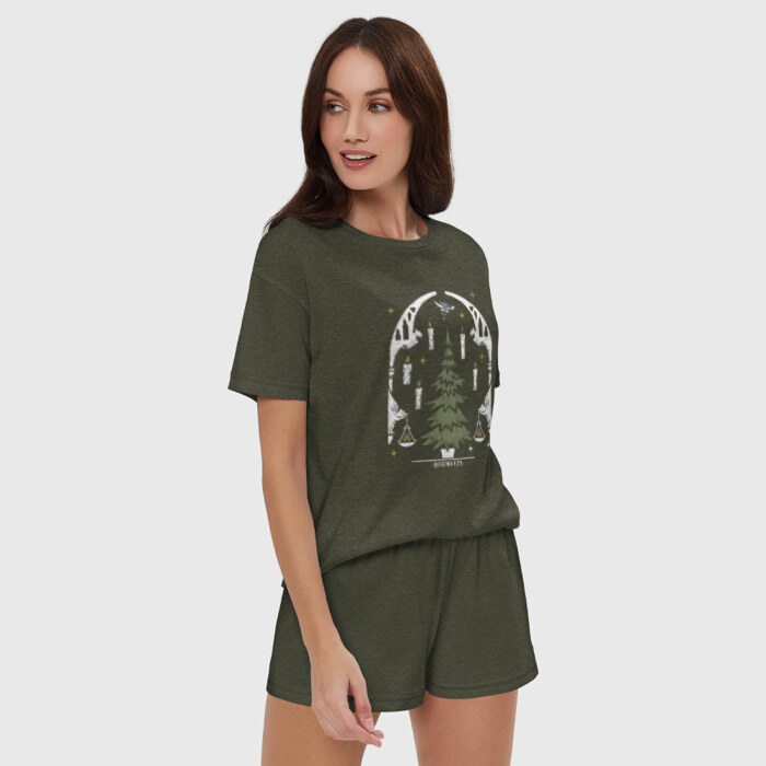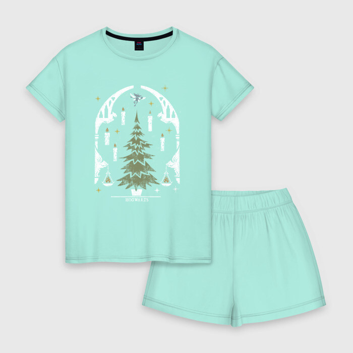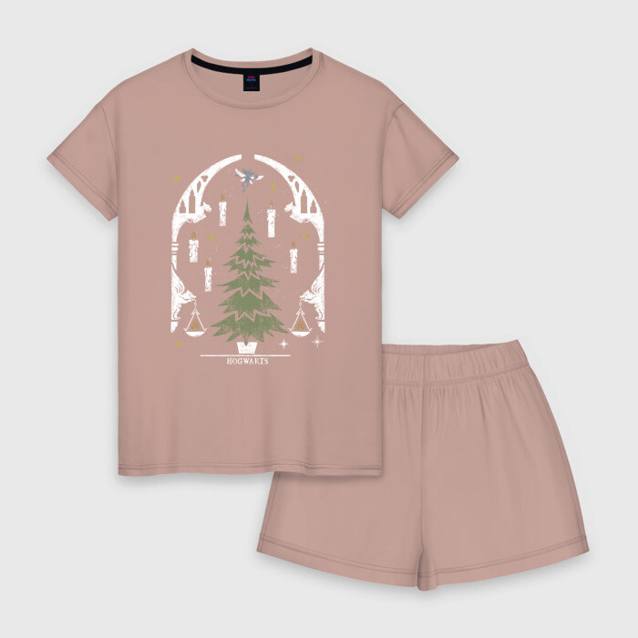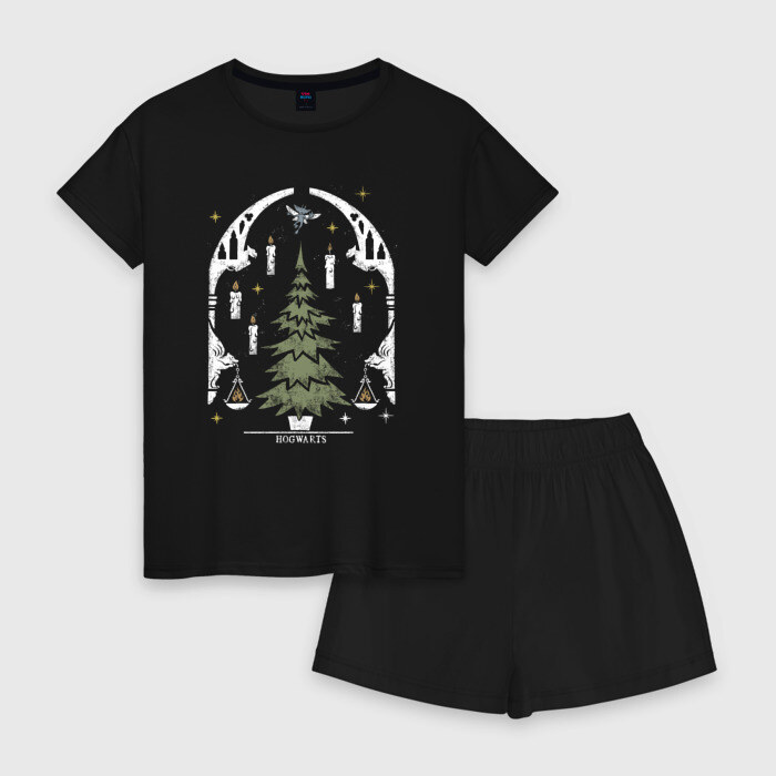 Женская пижама с шортиками хлопок с принтом Хогвартс