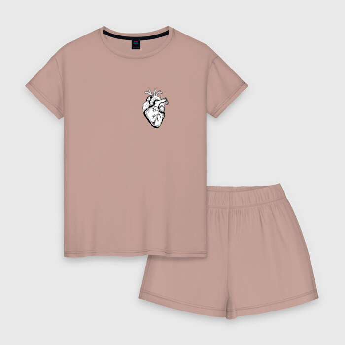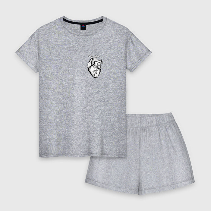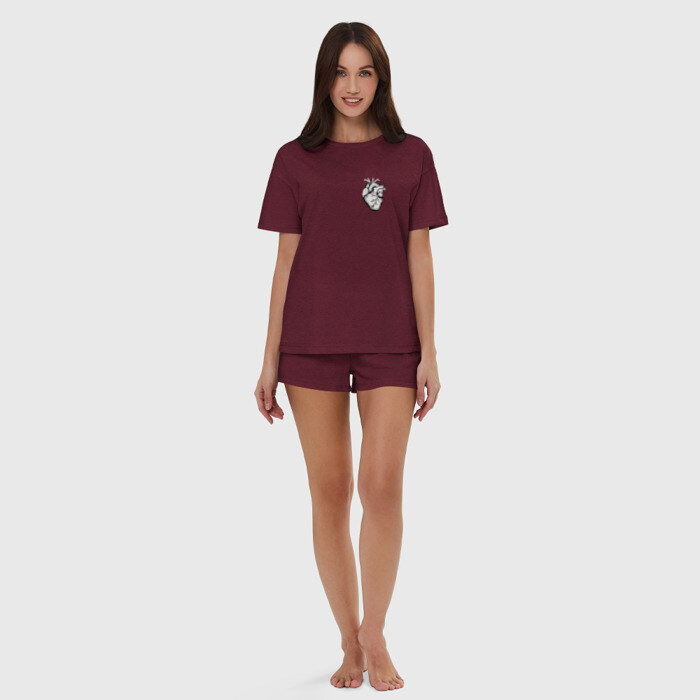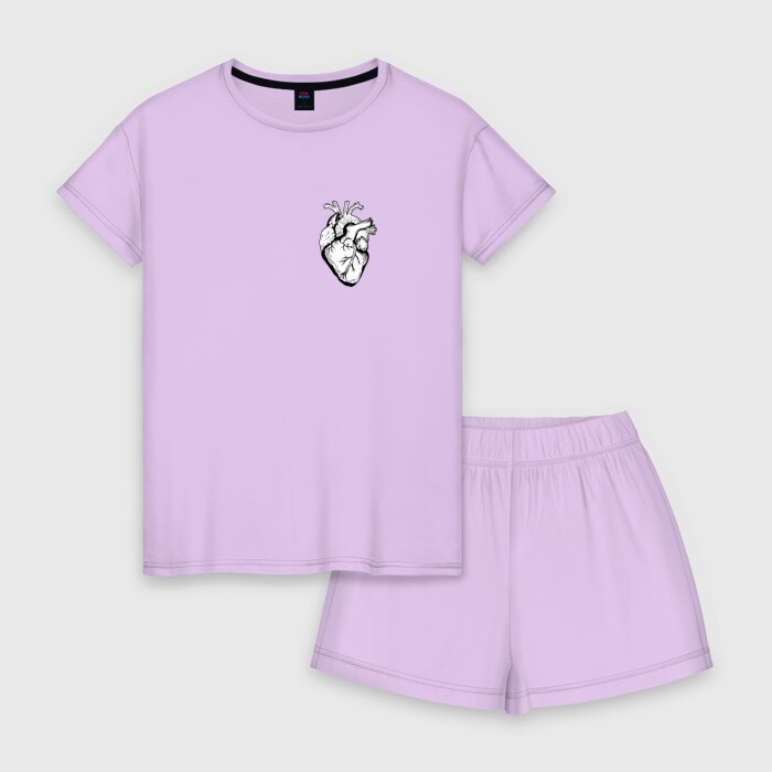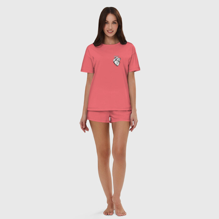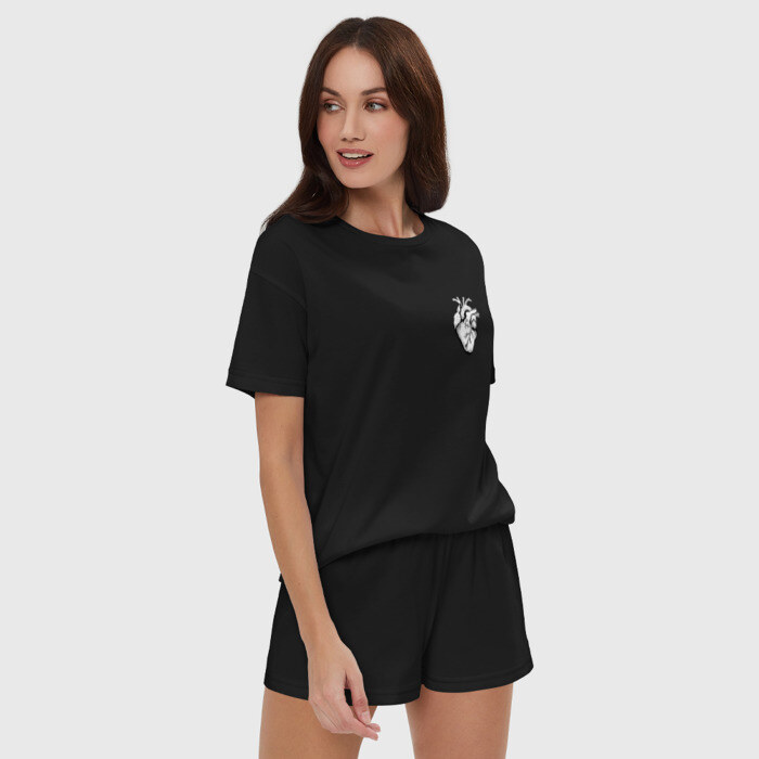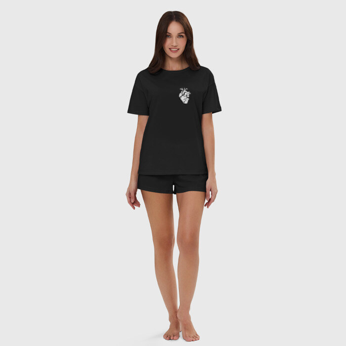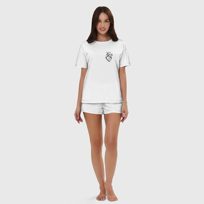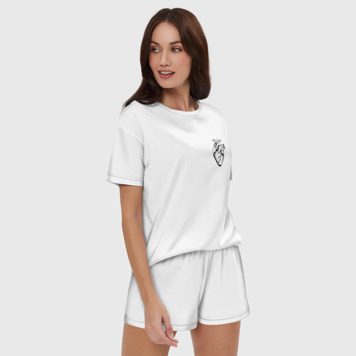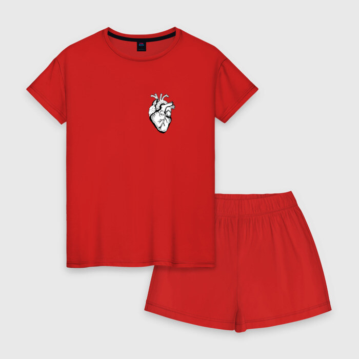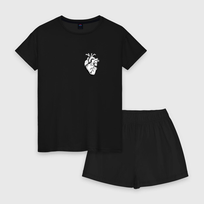 Женская пижама с шортиками хлопок с принтом Анатомическое сердце