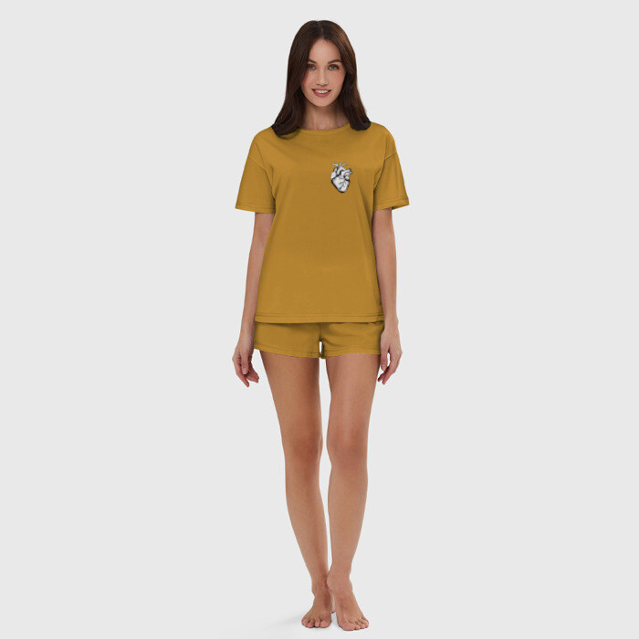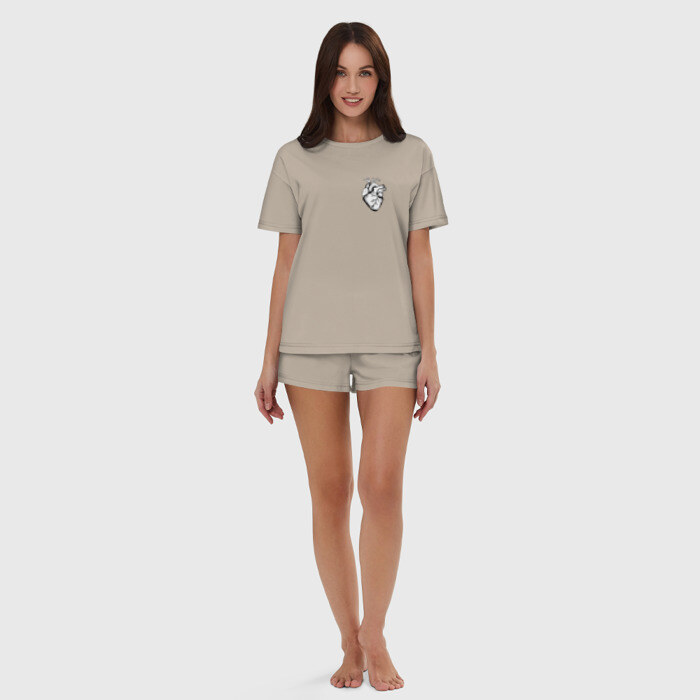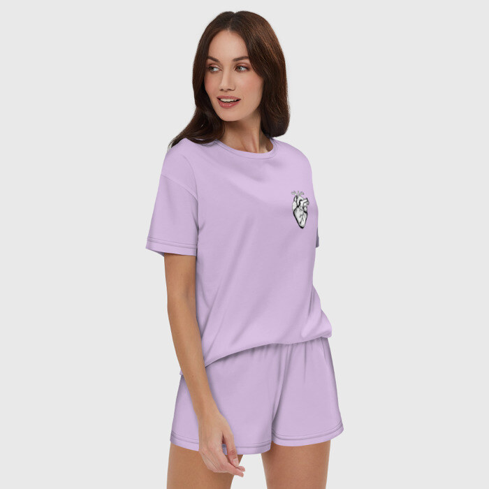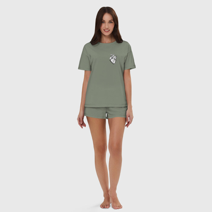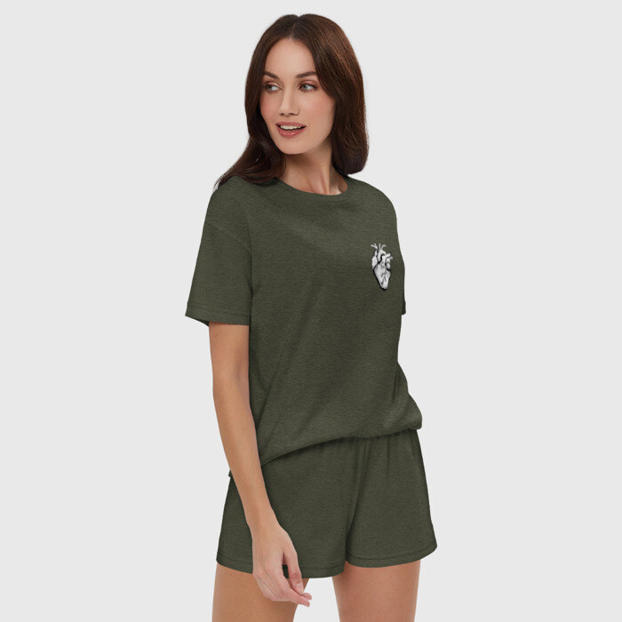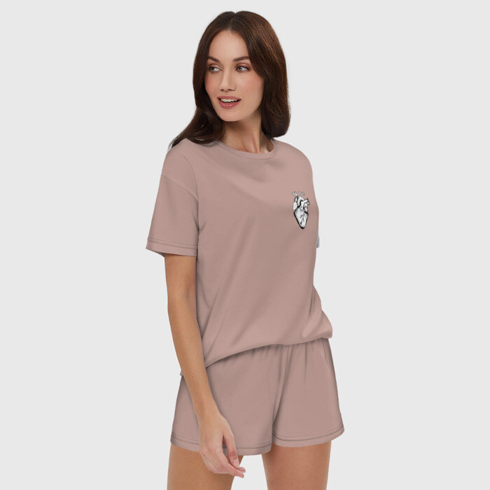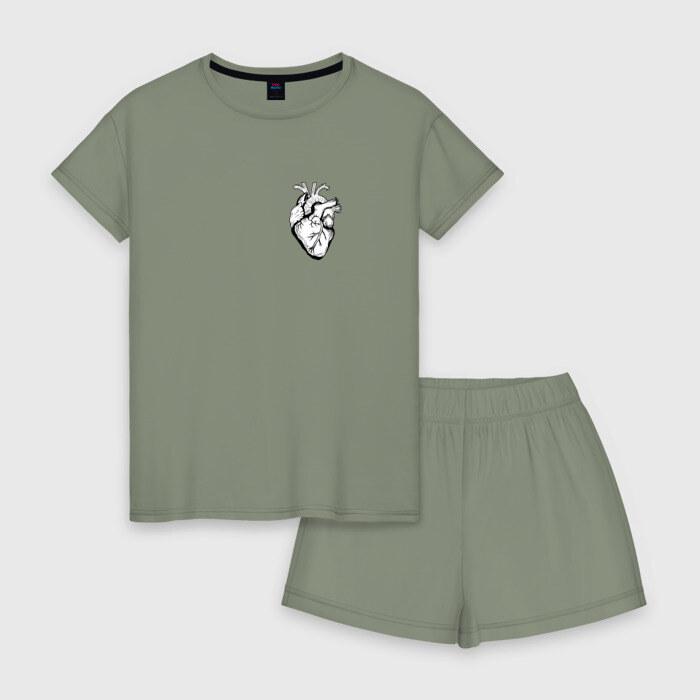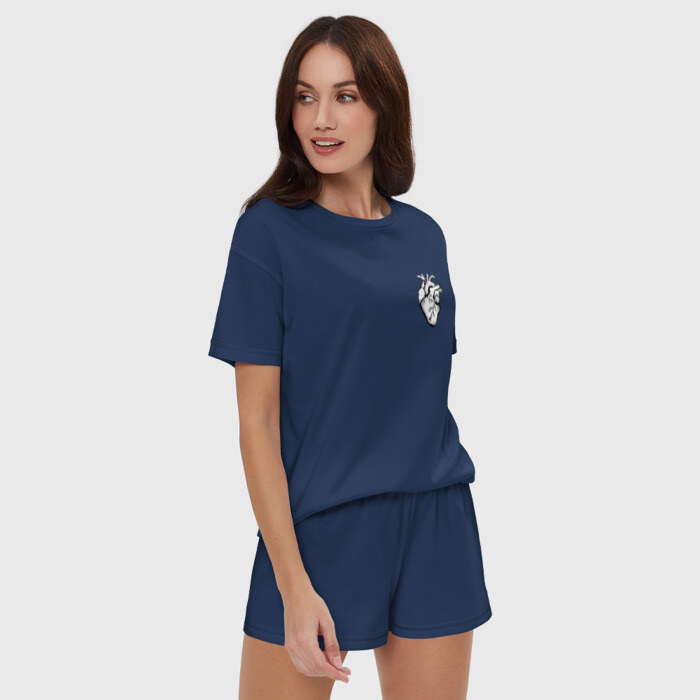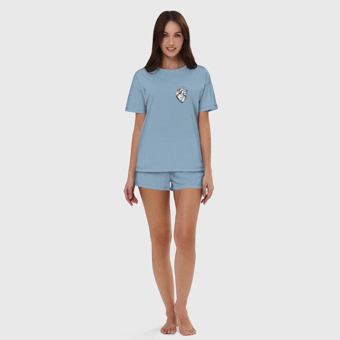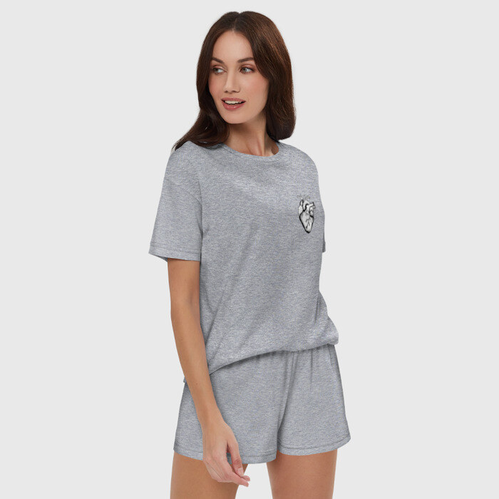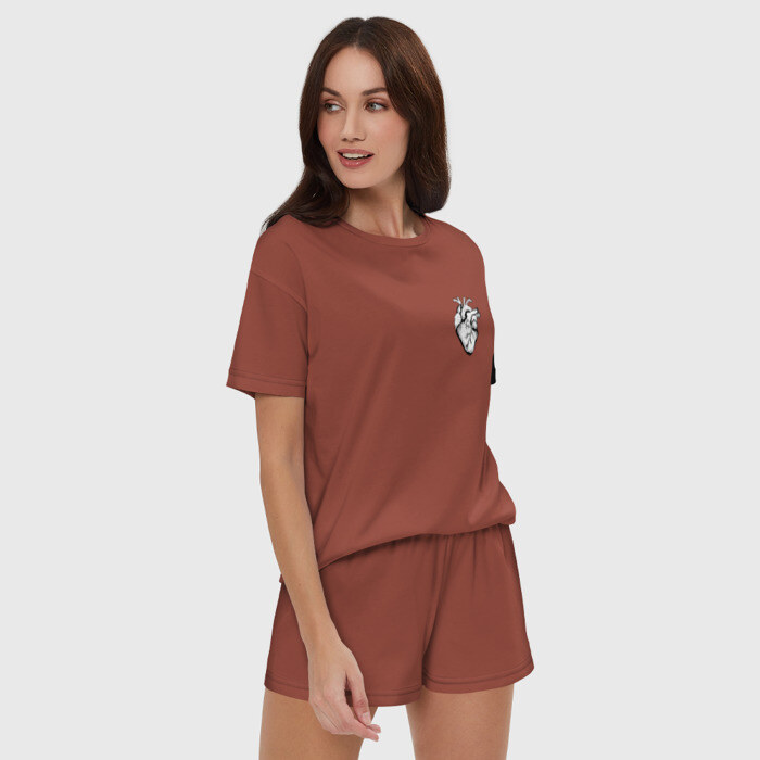 Женская пижама с шортиками хлопок с принтом Анатомическое сердце