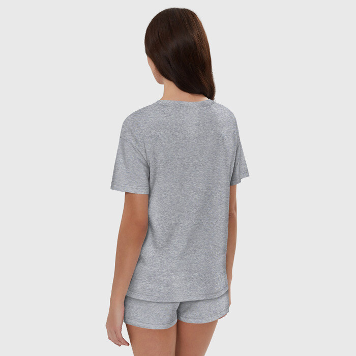 Пижама сшита из мягкого хлопка. Базовую хлопковую футболку дополняют такого же цвета шорты свободного кроя с мягкой резинкой. Принт наносится только на футболку. Пара может стать удобной одеждой как для дома, так и для сна.
