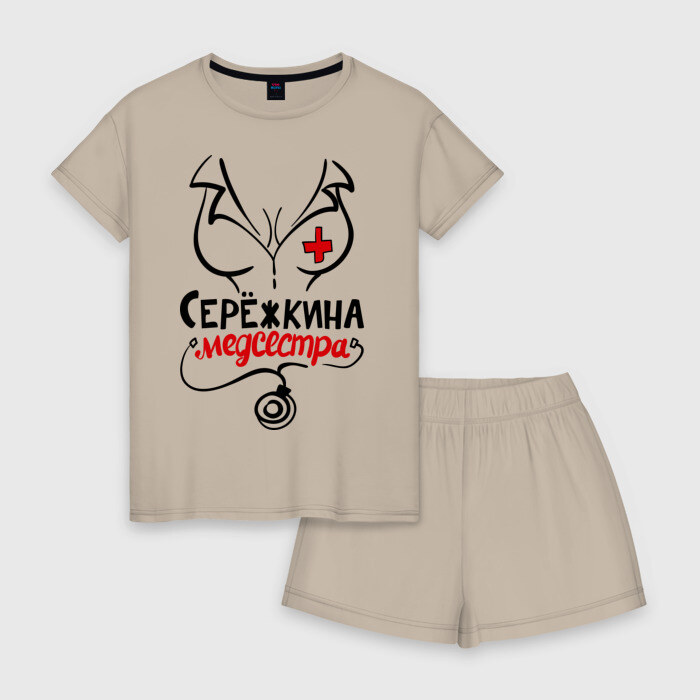 Женская пижама с шортиками хлопок с принтом Серёжкина медсестра