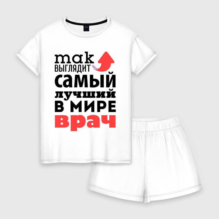 Женская пижама с шортиками хлопок с принтом Так выглядит врач