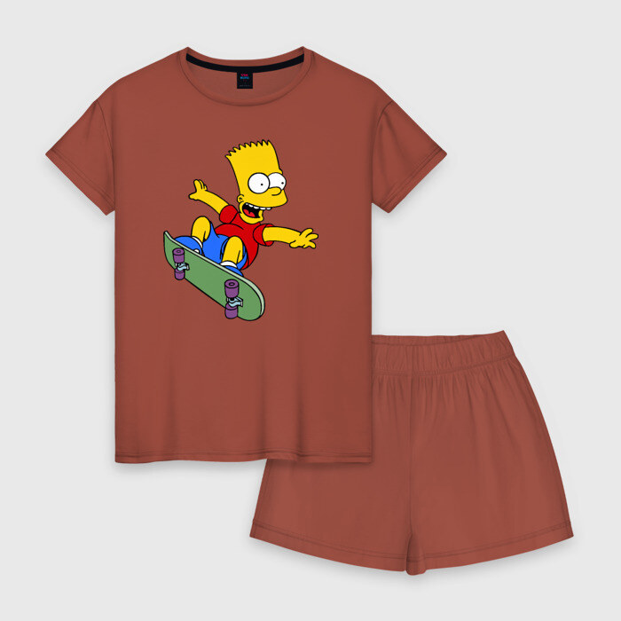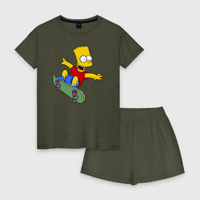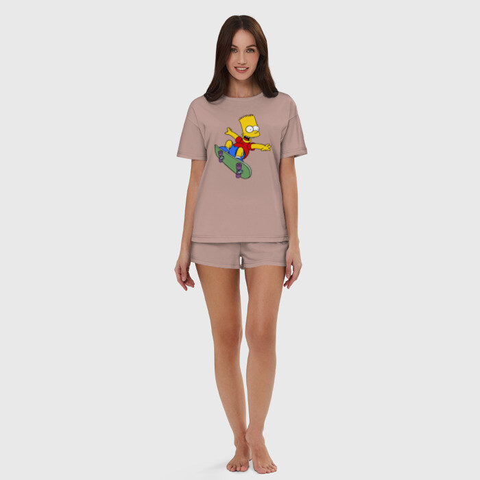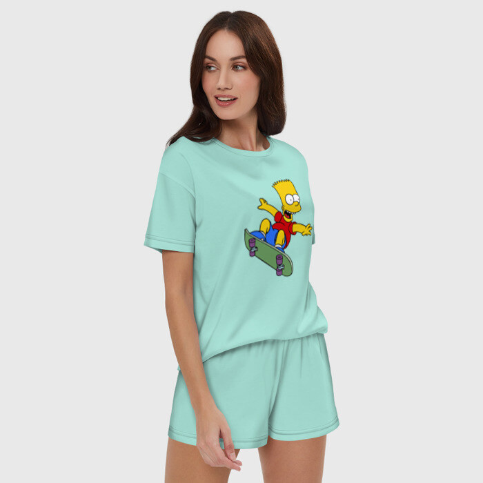 Женская пижама с шортиками хлопок с принтом Барт на скейте