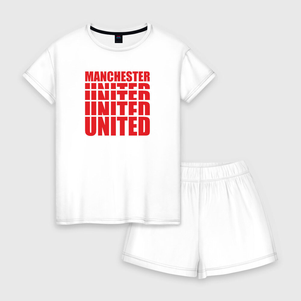 Женская пижама с шортиками хлопок с принтом Manchester United red