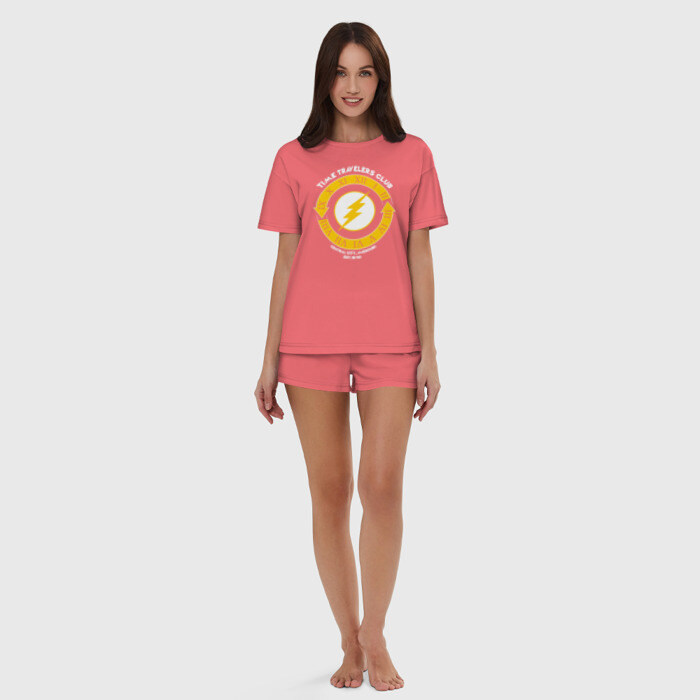 Женская пижама с шортиками хлопок с принтом Time Travelers Club