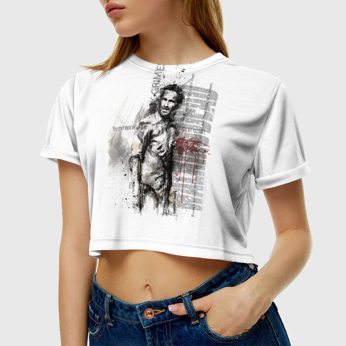 Женская футболка 3D укороченная с принтом Rick Grimes