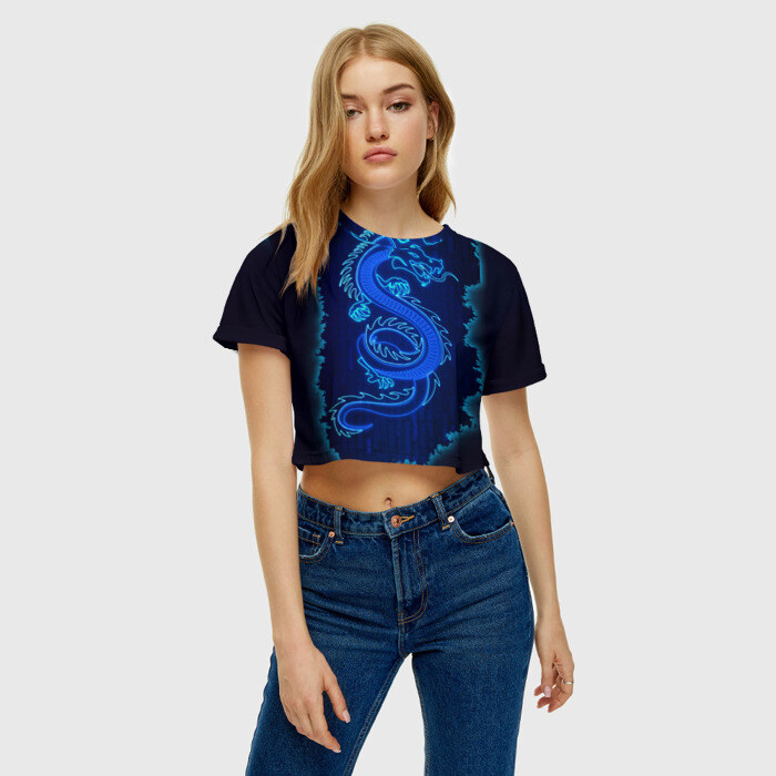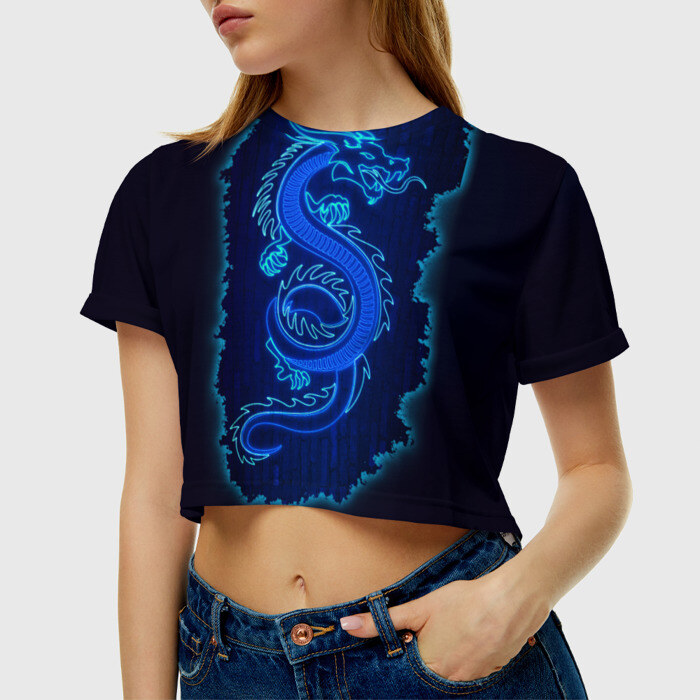 Женская футболка Crop-top 3D с принтом NEON DRAGON
