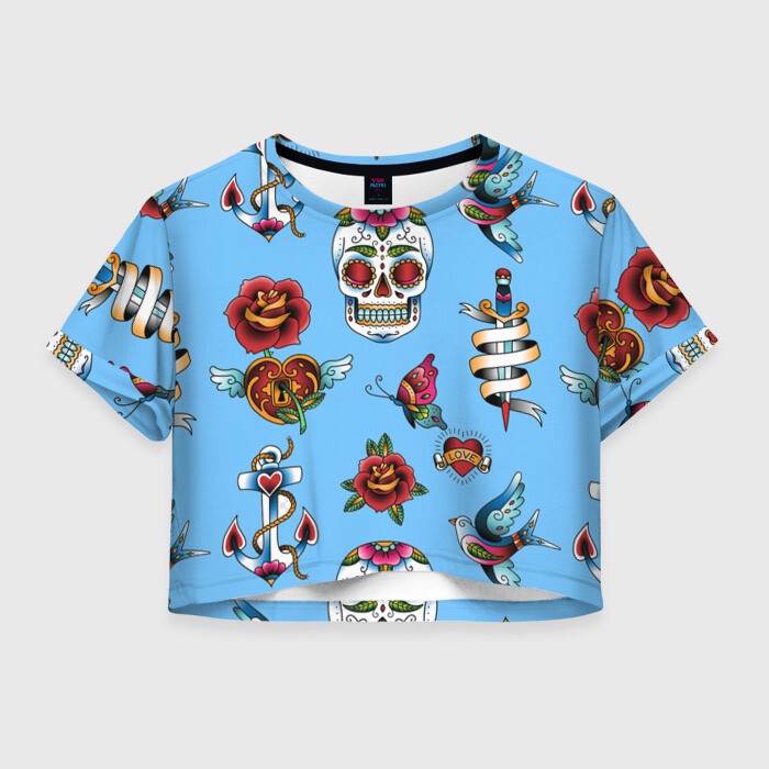 Женская футболка Crop-top 3D с принтом Old school tattoo_1