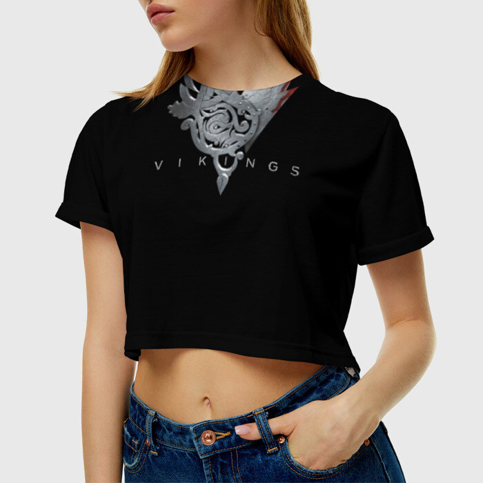 Женская футболка 3D укороченная с принтом Эмблема Викингов