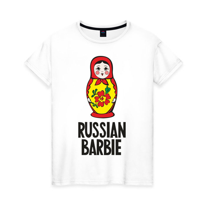 Женская футболка хлопок с принтом Russian Barbie