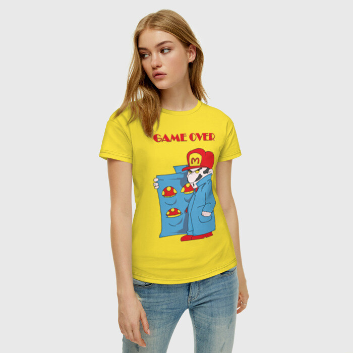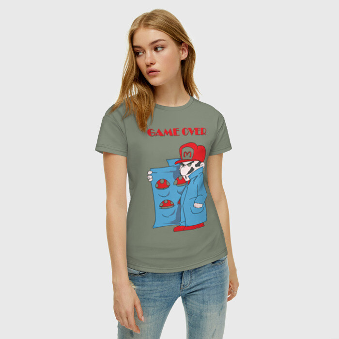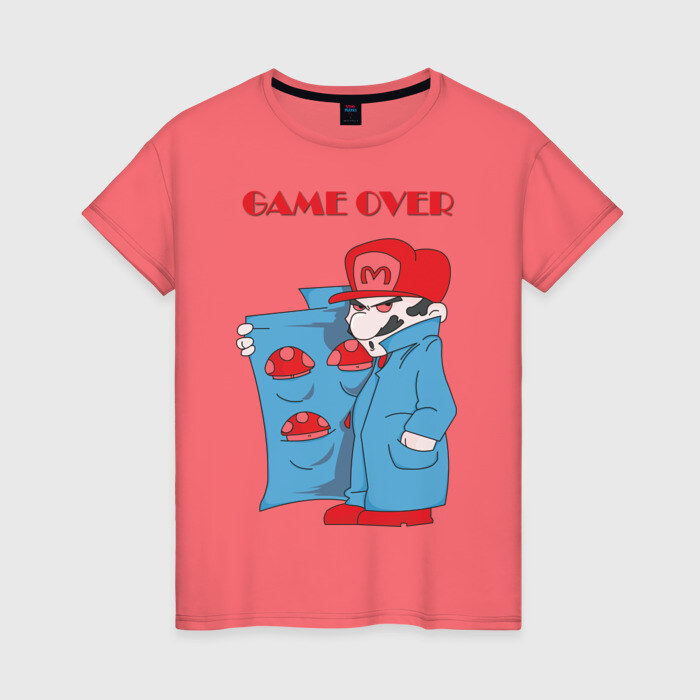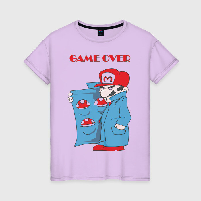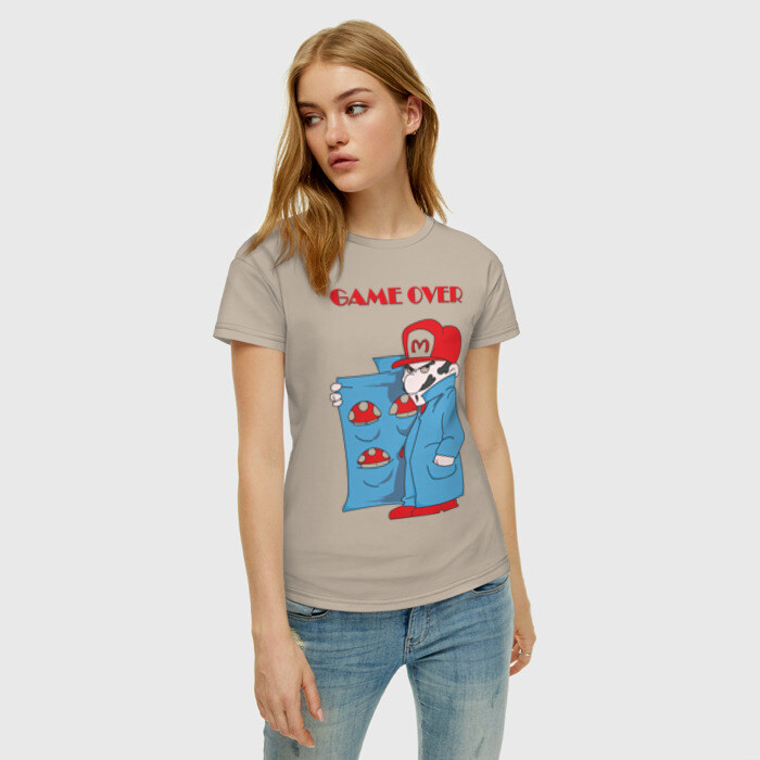 Женская футболка хлопок с принтом Марио - Игра окончена