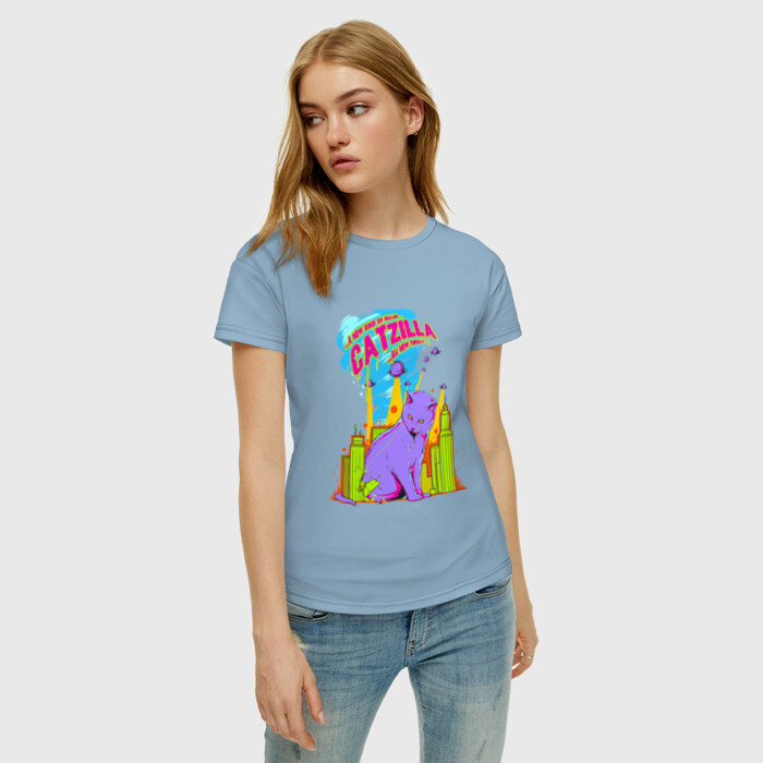 Женская футболка хлопок с принтом Catzilla