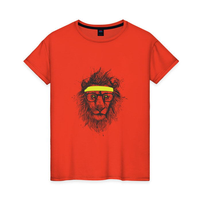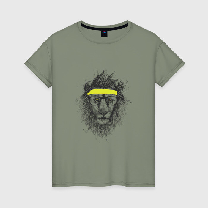 Женская футболка хлопок с принтом Лев В Очках