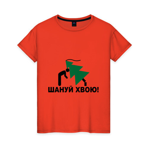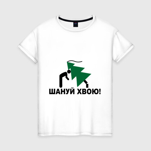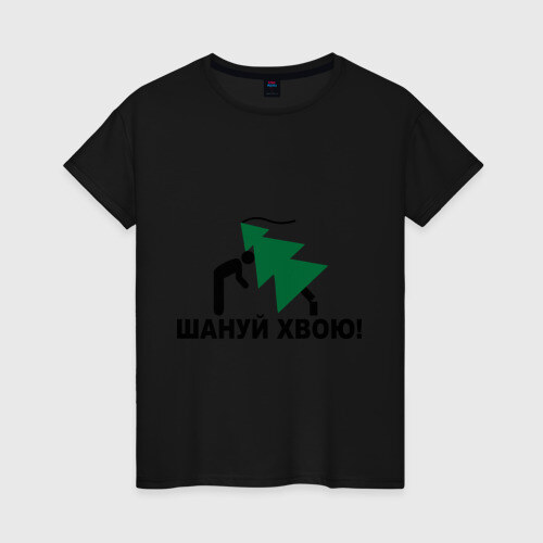 Женская футболка хлопок с принтом Шануй хвою!