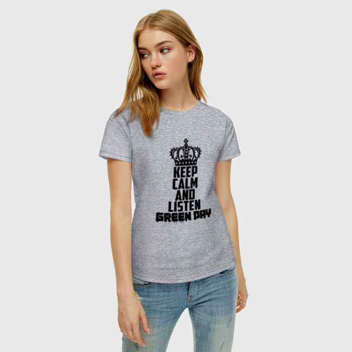 Женская футболка хлопок с принтом Keep calm and listen Green Day