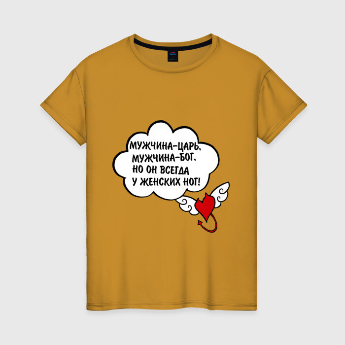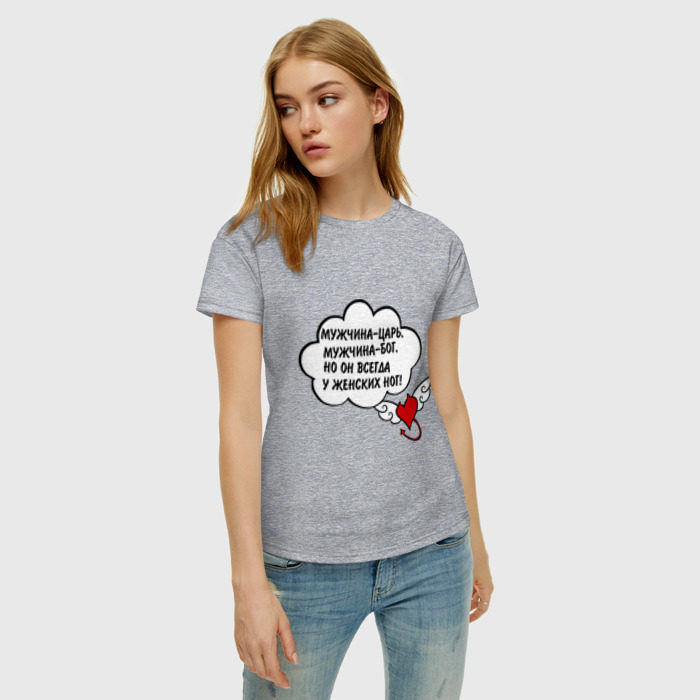 Женская футболка хлопок с принтом Мужчина всегда у женских ног!