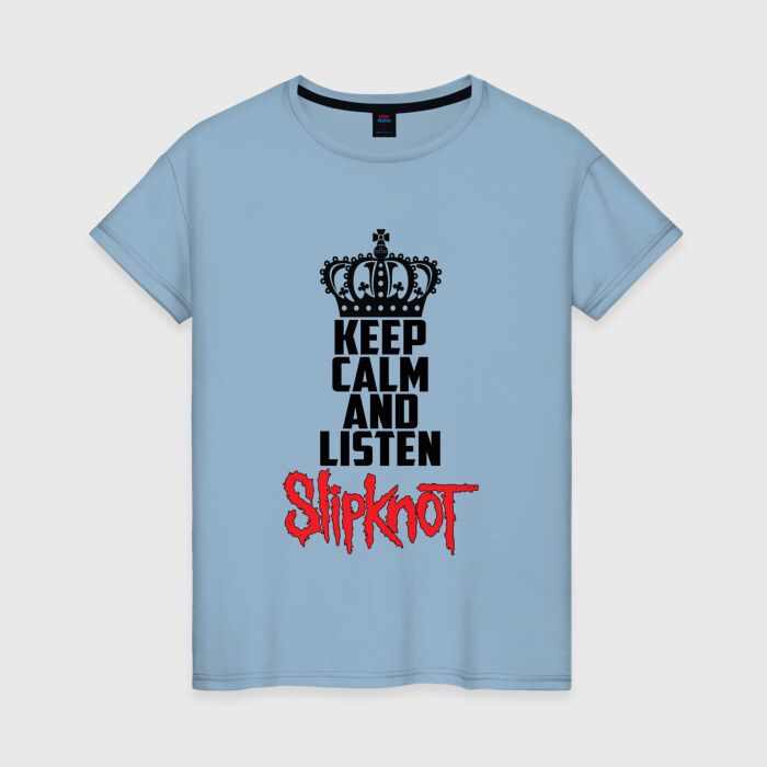 Женская футболка хлопок с принтом Keep calm and listen Slipknot