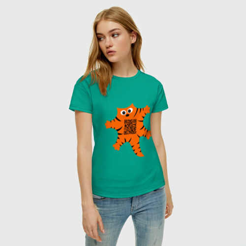 Женская футболка хлопок с принтом Почеши мне пузико