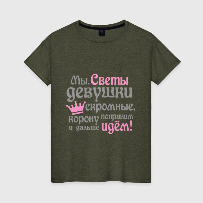 Женская футболка хлопок с принтом Мы Светы девушки скромные