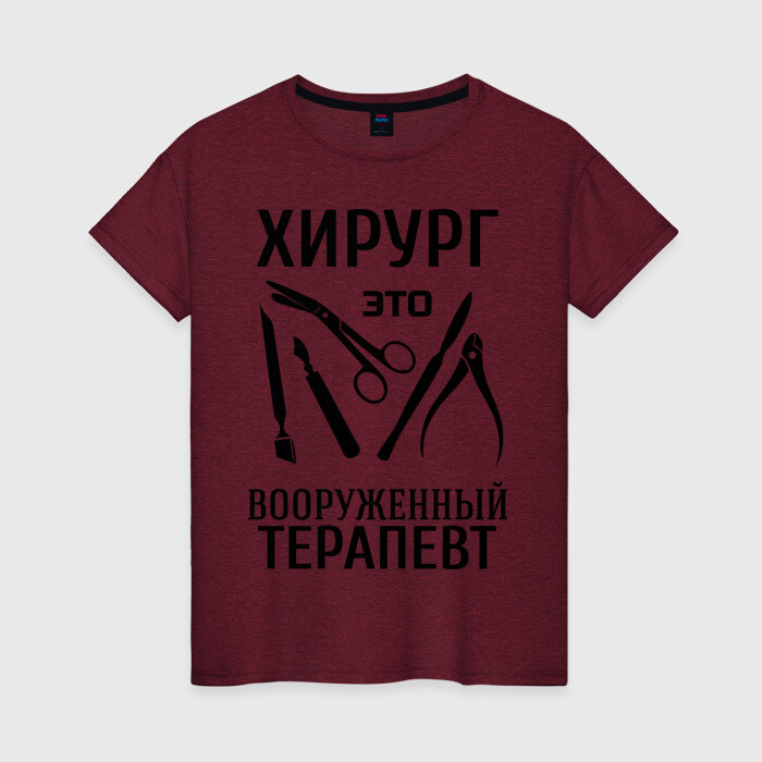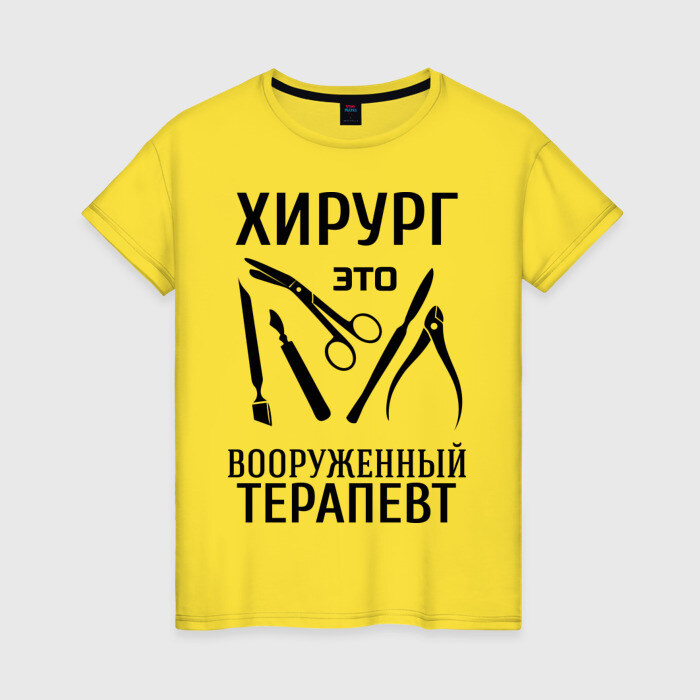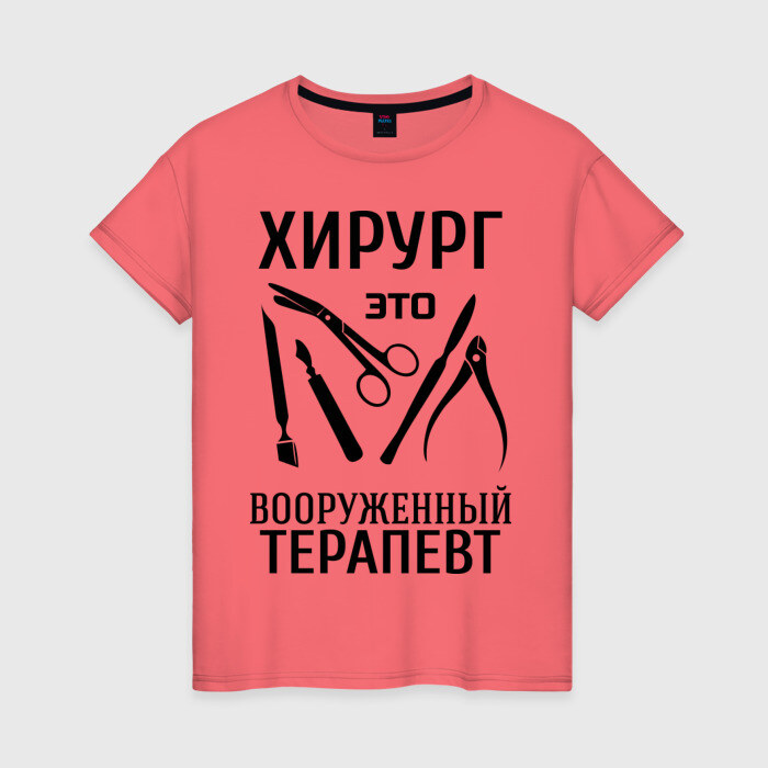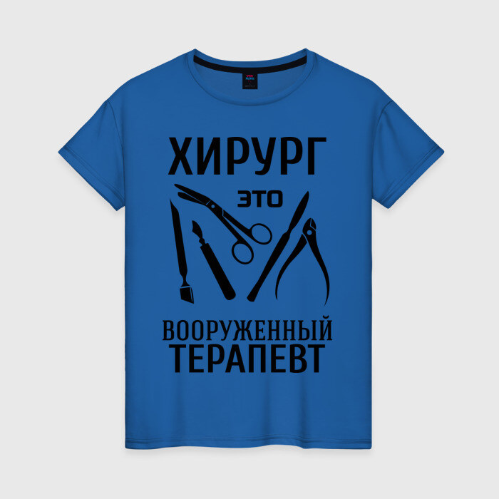 Женская футболка хлопок с принтом Хирург - вооруженный терапевт
