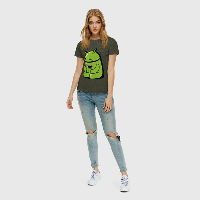 Женская футболка хлопок Андроид плачет